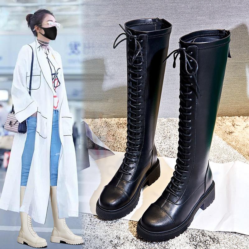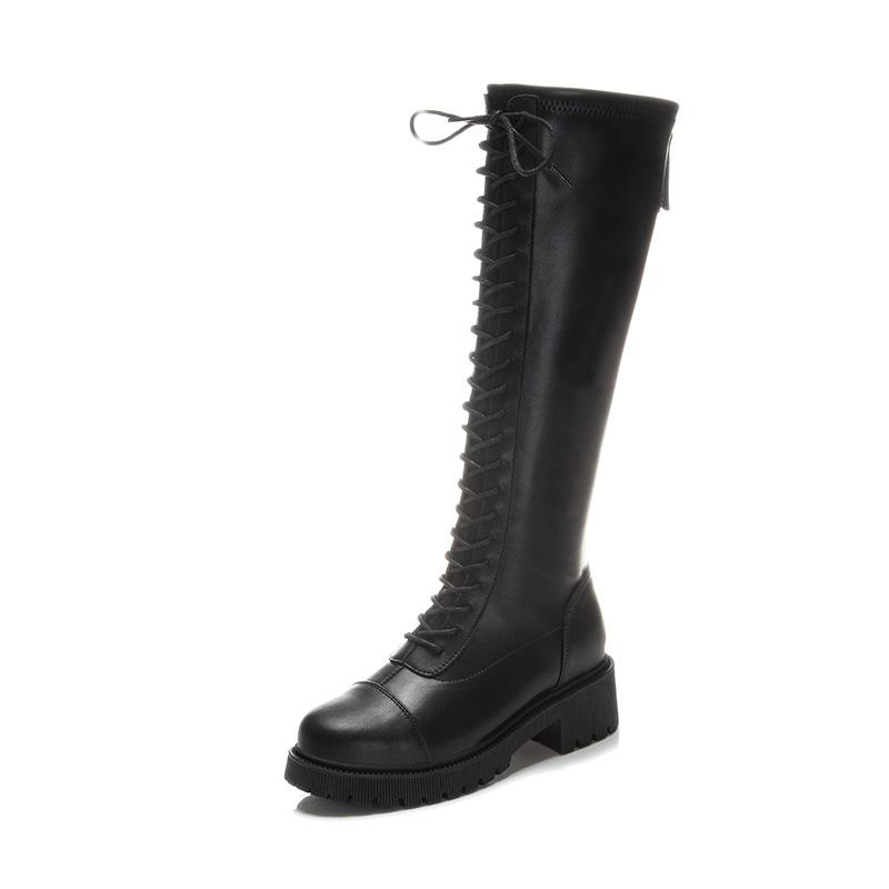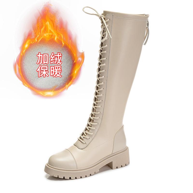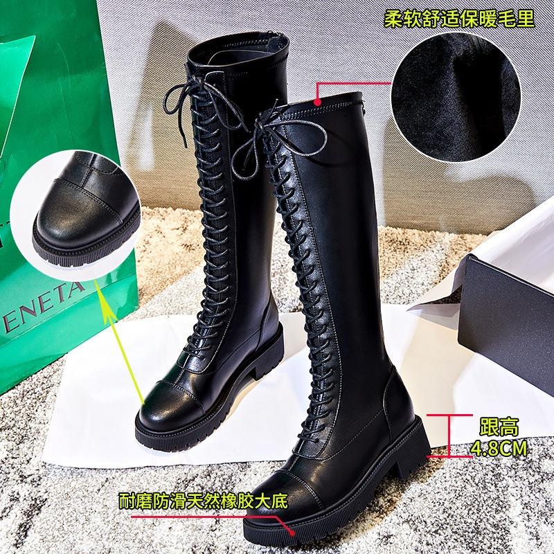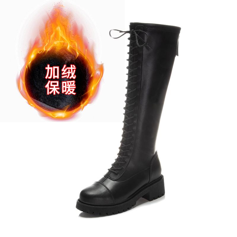 Женские осенне-зимние новые ботинки-рыцари с высоким голенищем, повседневные кожаные ботинки на толстом каблуке, бархатные туфли, детские