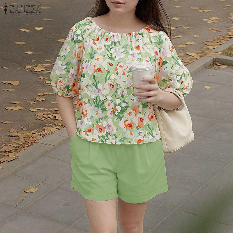 ZANZEA Женская блузка с коротким рукавом и шорты Летние костюмы-двойки с цветочным принтом