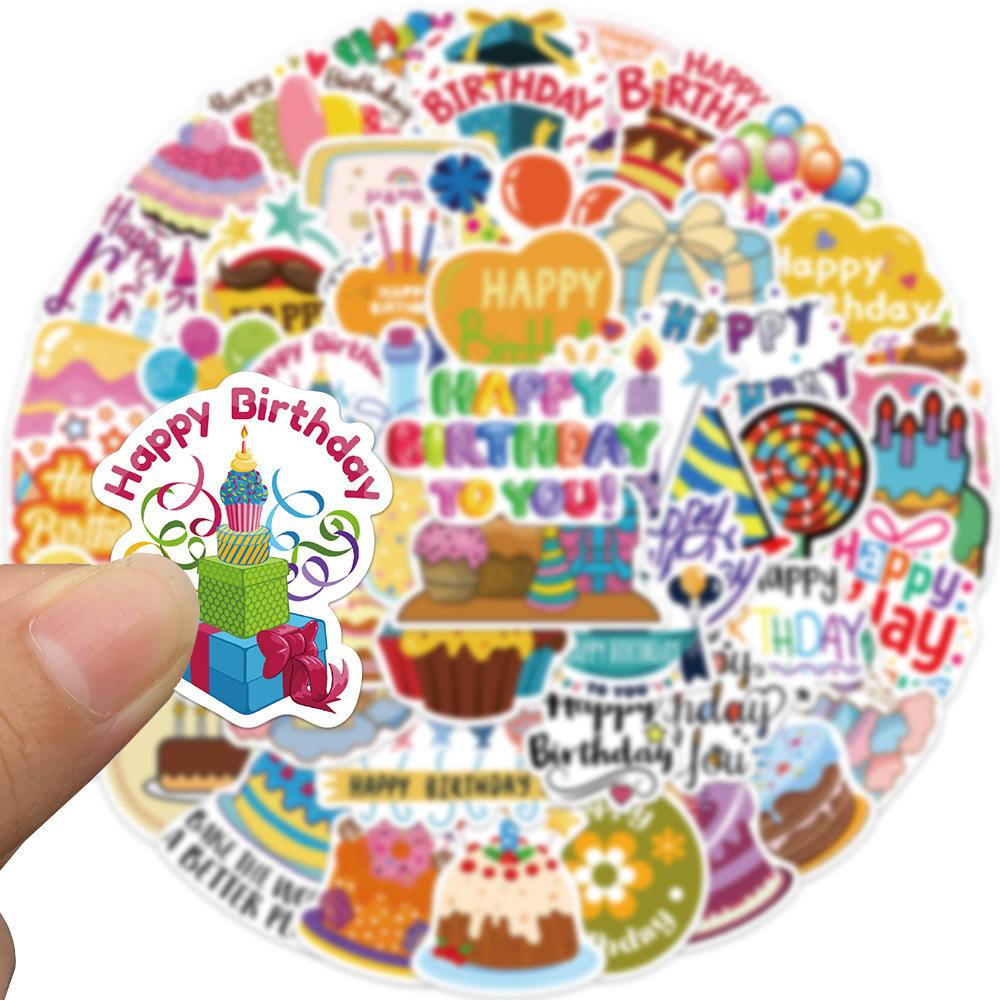 50 Birthday Wishes Graffiti Stickers Decorate Suitcase Guitar DIY Waterproof Stickers