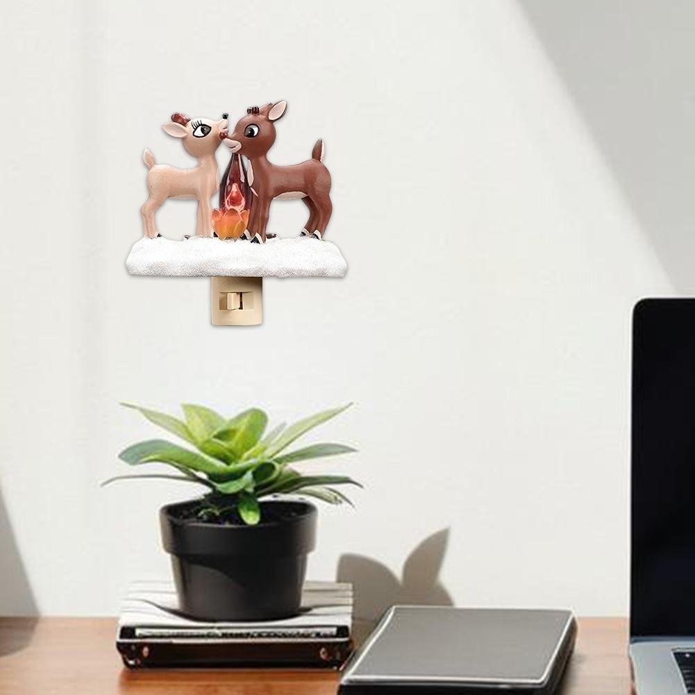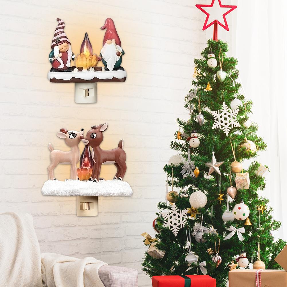 Christmas Campfire Flickering Nightlight Plug Into Wall 3D Decorative Night Light Cartoon Campfire Lamp for Bedroom Bathroom