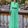 Модные женские французские брюки с широкими штанинами, платье с V-образным вырезом и длинными рукавами, с пайетками на талии, для весны и осени