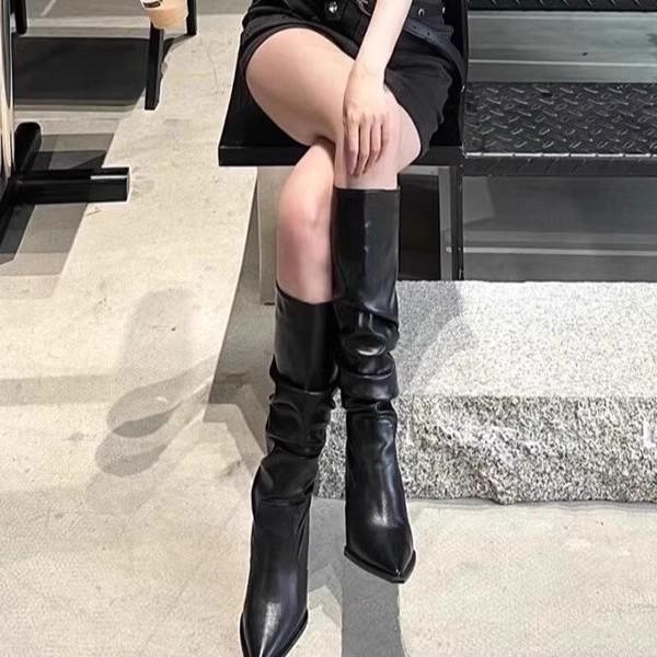 Широкие сапоги Spice Girl 2025 Новые женские сапоги Big Tube с острыми носами Тонкие каблуки Узкие ворсовые сапоги Большие размеры выше колена