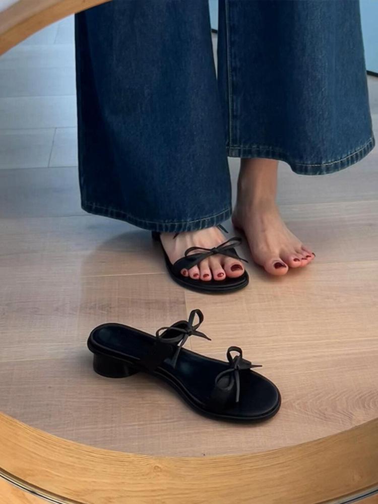 Bow-tie one-word slippers women's summer wear beach Roman sandals open-toed thick-heeled cool slippers — купить товар онлайн с бесплатной доставкой по всему миру!