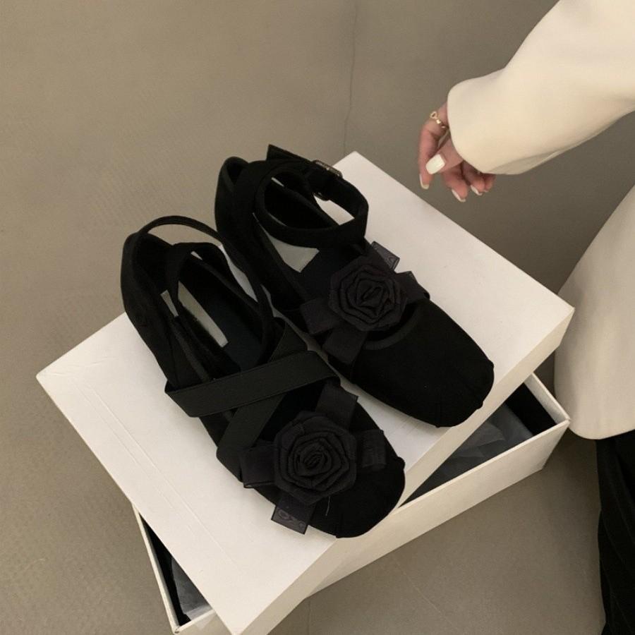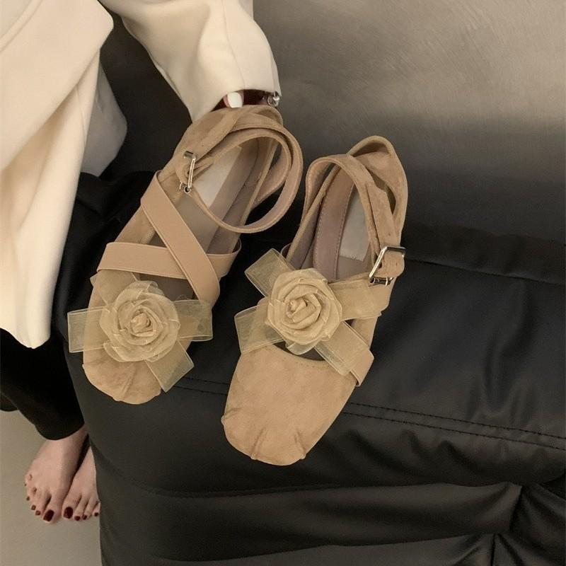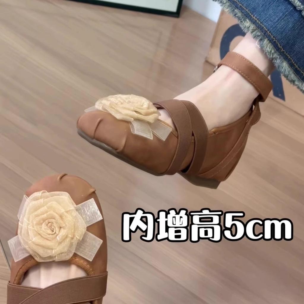 Внутреннее увеличение высоты 5 см маленькие ретро балетки с камелиями женские 2025 лето крест с круглым носком туфли Мэри Джейн