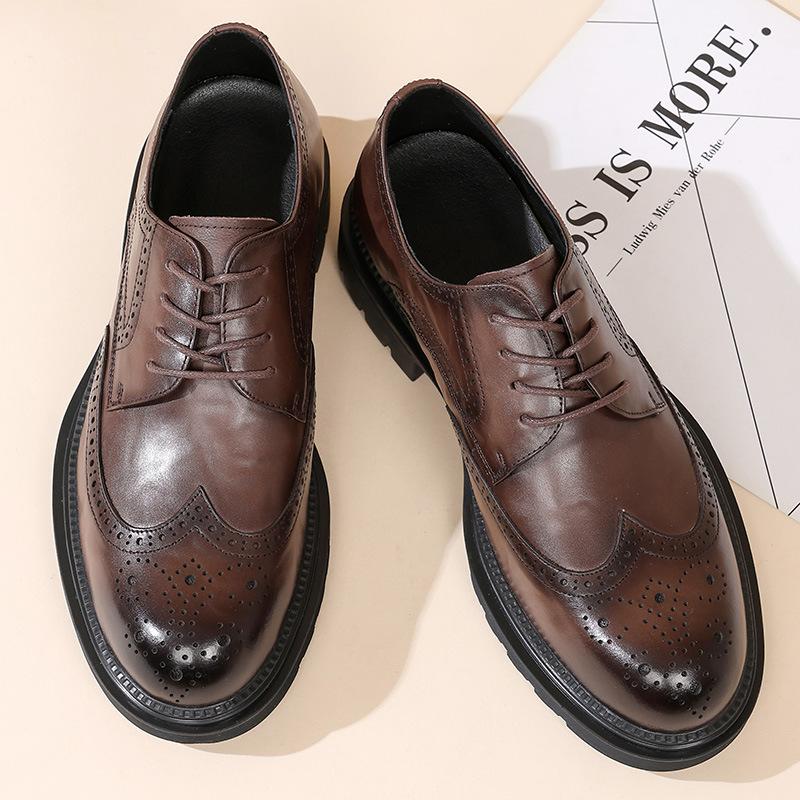 2025 осень новая кожаная мужская обувь Брок модельная кожаная обувь коричневая британский стиль увеличивающая рост деловая кожаная обувь мужская — купить товар онлайн с бесплатной доставкой по всему миру!