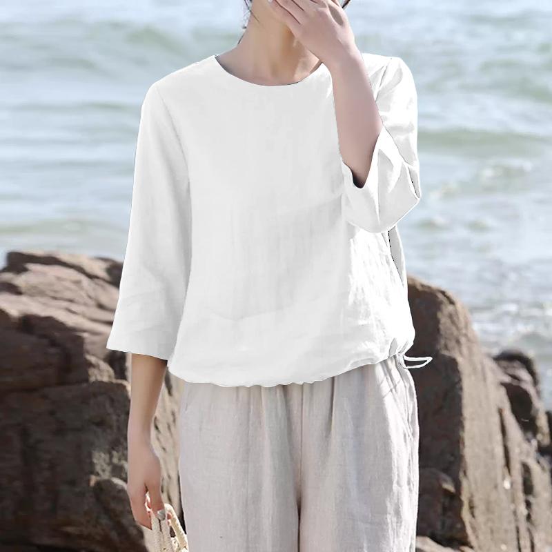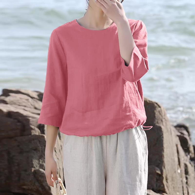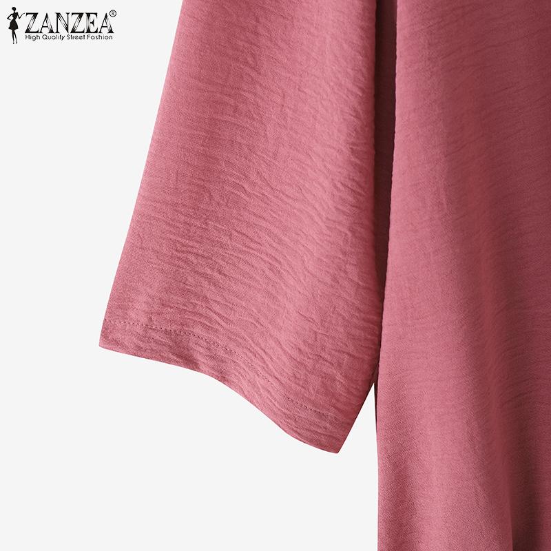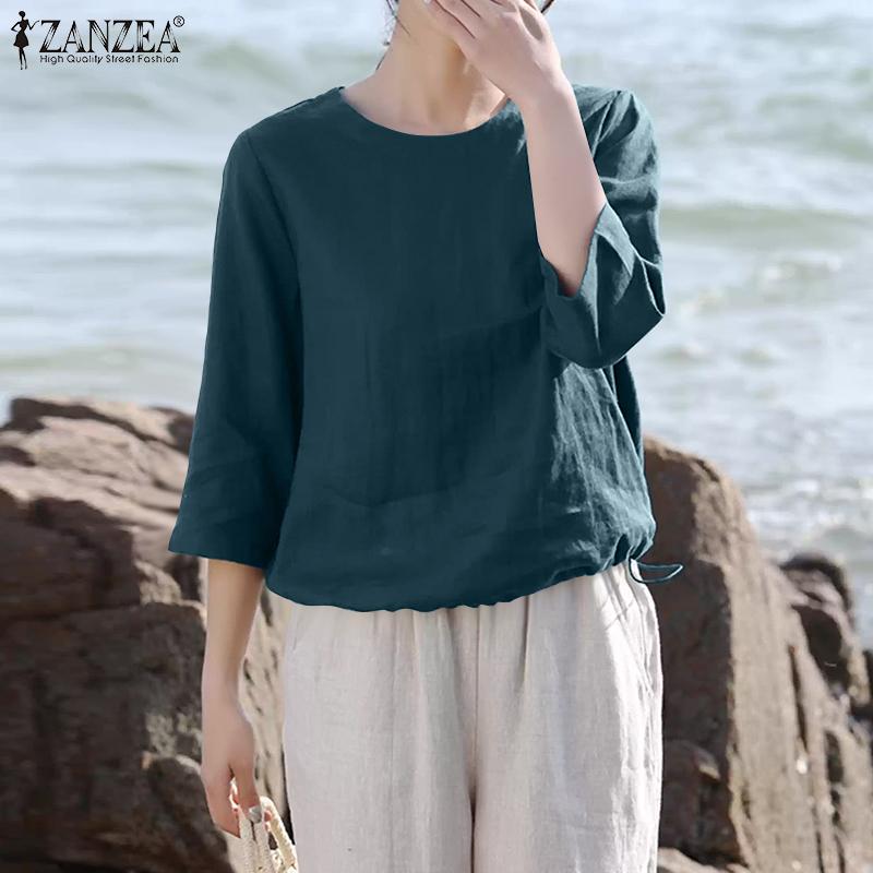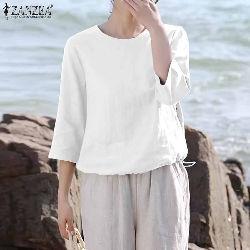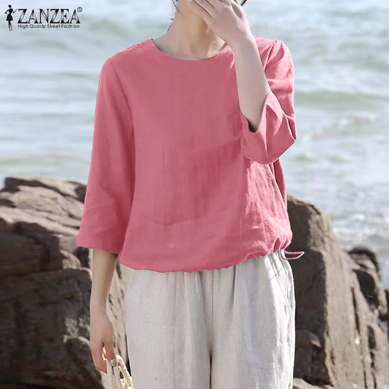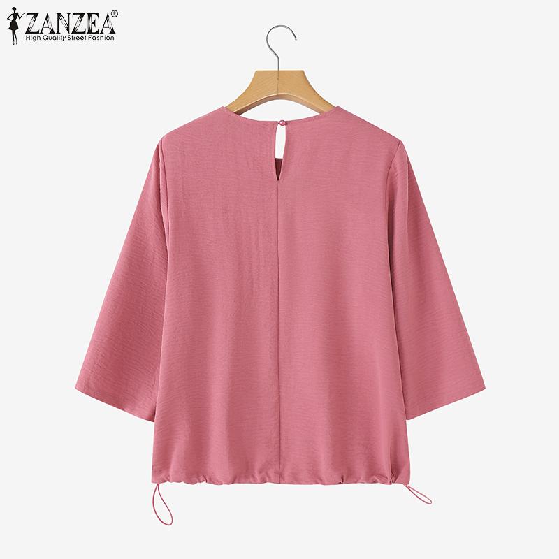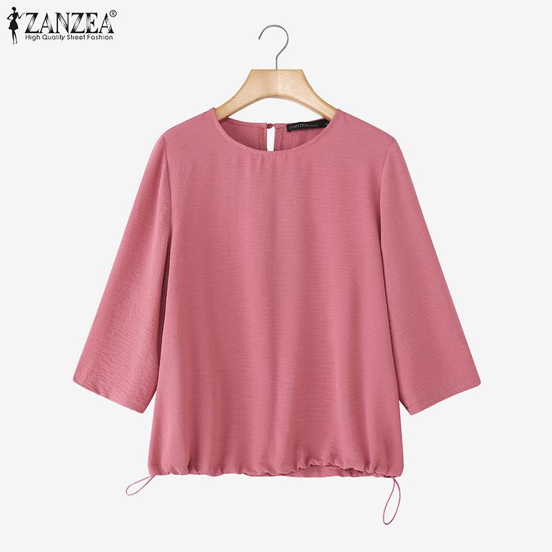 ZANZEA Женская повседневная летняя блузка с круглым вырезом и рукавом 3/4