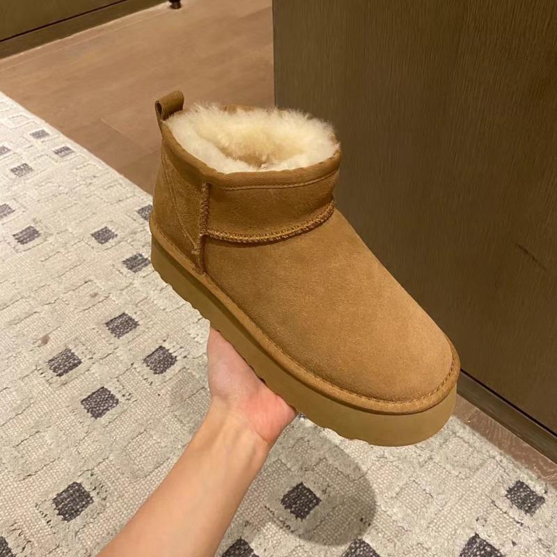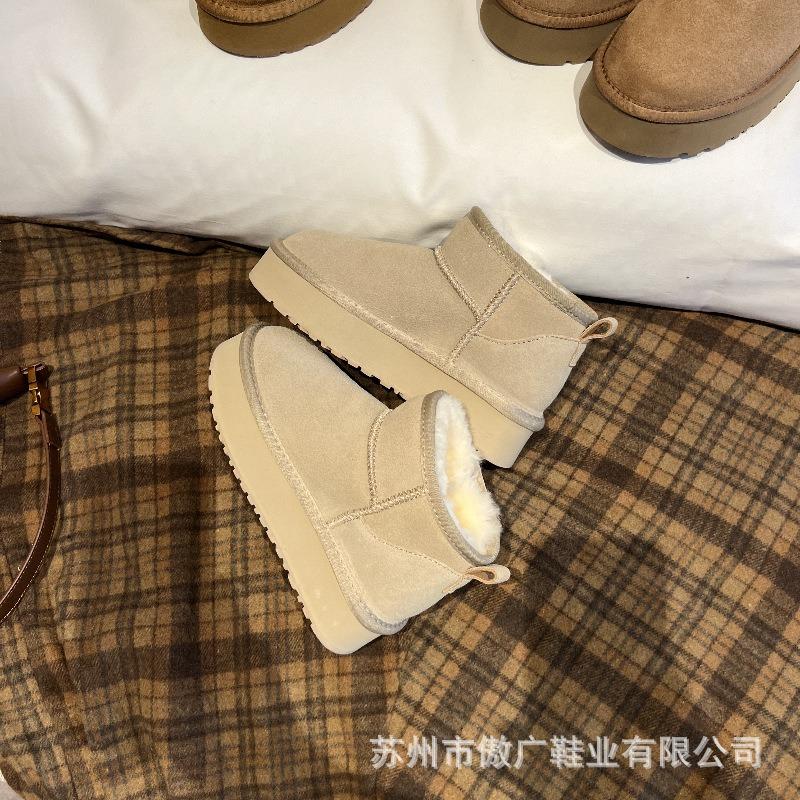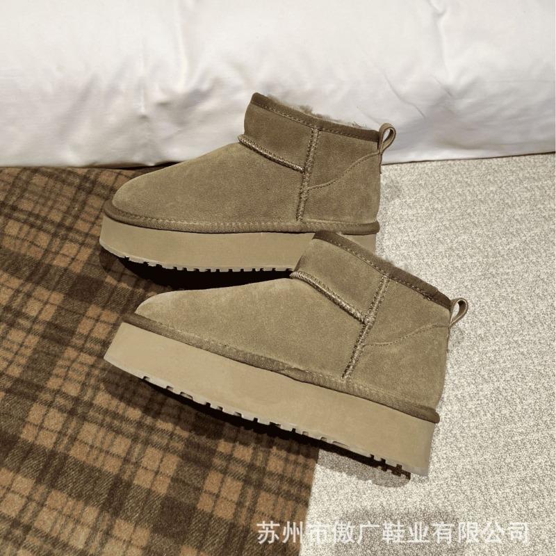 Меховые интегрированные зимние ботинки женские зимние на толстой подошве с увеличением роста кожаные шерстяные женские короткие ботинки