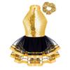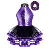 Костюм для танцев для девочек, топ-халтер без рукавов с открытой спиной, платье-пачка, украшенное блестящими пайетками, комплект с головным убором