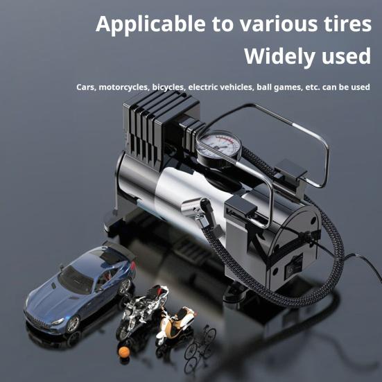 Универсальное портативное решение: Помимо автомобильных шин, этот портативный воздушный компрессор идеально подходит для мотоциклов, велосипедов, спортивных мячей, пляжных поплавков и надувных игрушек.. Идеально подходит для экстренных ситуаций на шоссе, приключений на свежем воздухе или ежедневных поездок на работу.