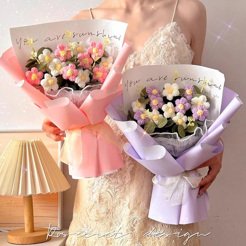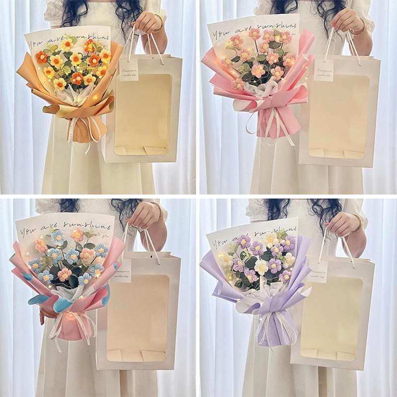 Букет искусственных цветов Вязаный крючком цветок с подсветкой Подарок для гостей на свадьбе Выпускной букет Подарок на День учителя Рождественский декор