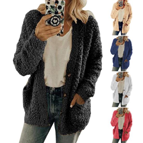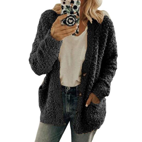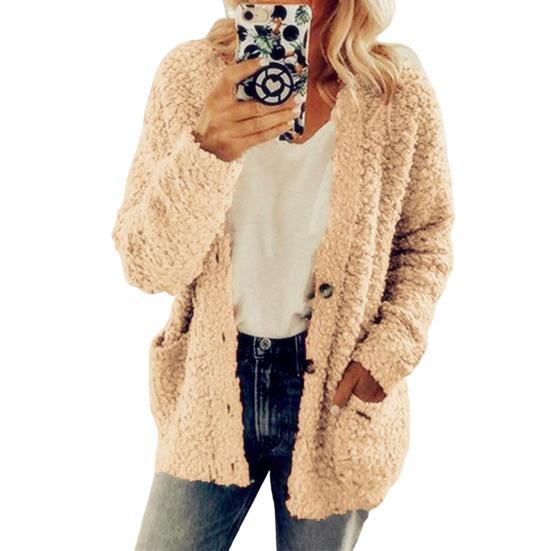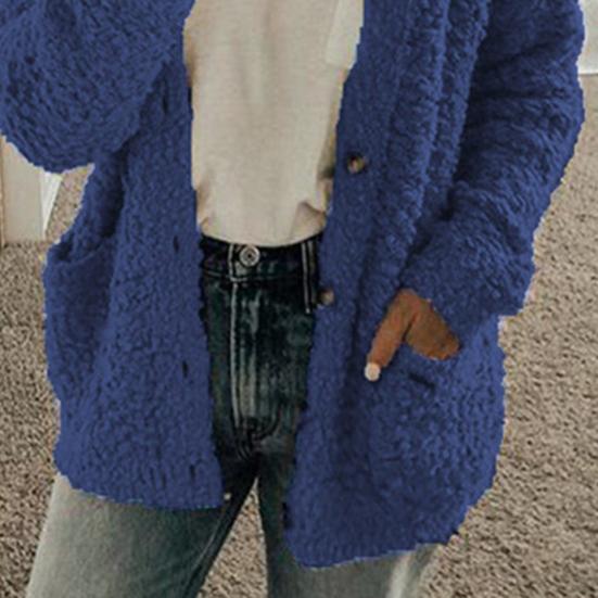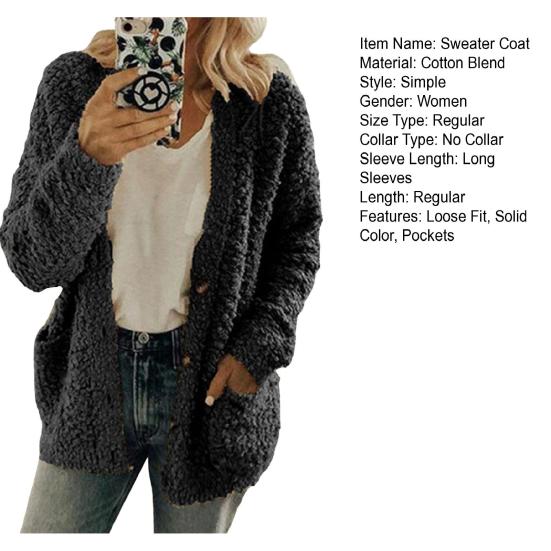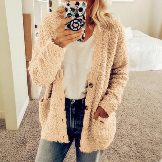Оставайтесь в тепле и стильными с этим женским пальто из мягкой и удобной хлопковой смеси, идеальным для осени и зимы.. Этот однотонный жакет без воротника, с длинными рукавами и свободного кроя, излучает простоту и элегантность..