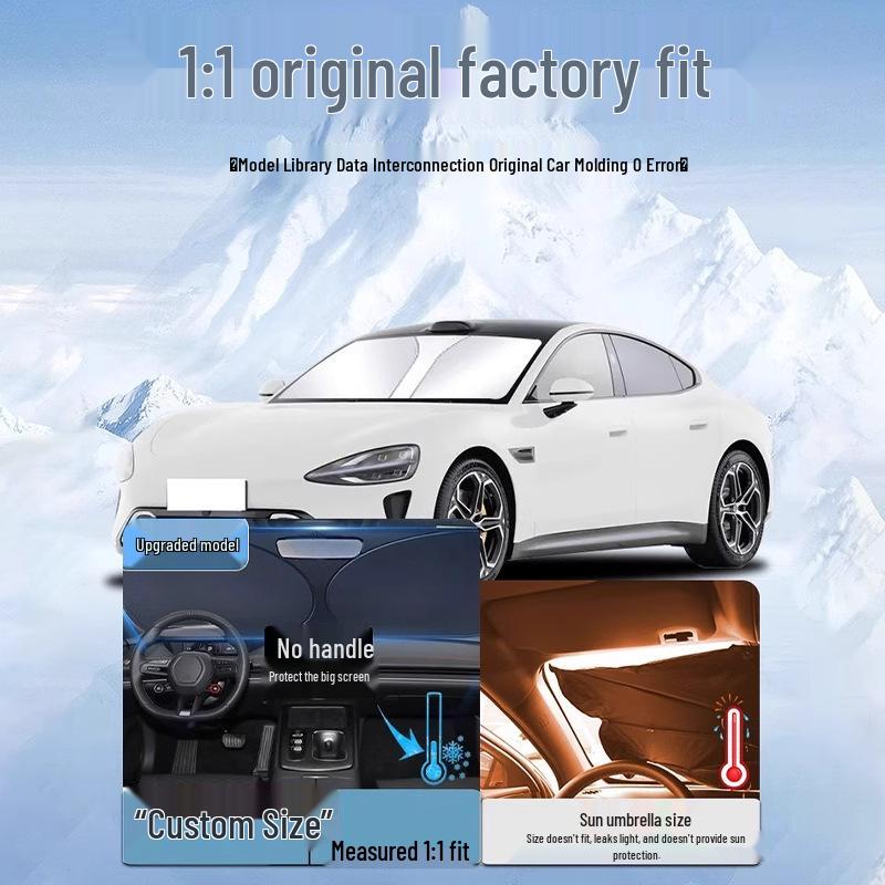 Солнцезащитный козырек для автомобиля Xiaomi SU7: Ткань для охлаждения глубокого космоса для лобового стекла - Теплоизоляция и светоблокировка.