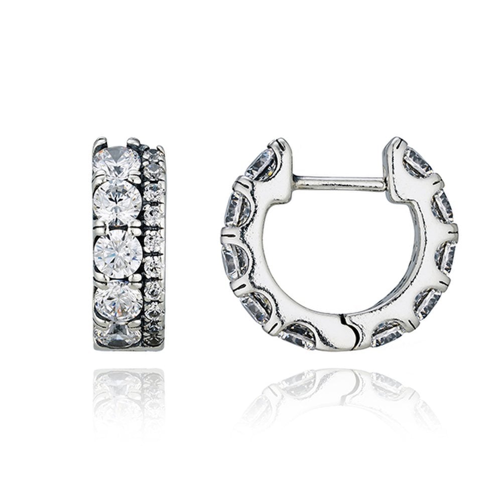 Pandora 290058C01 Вневременные серьги-кольца с двойным паве из серебра