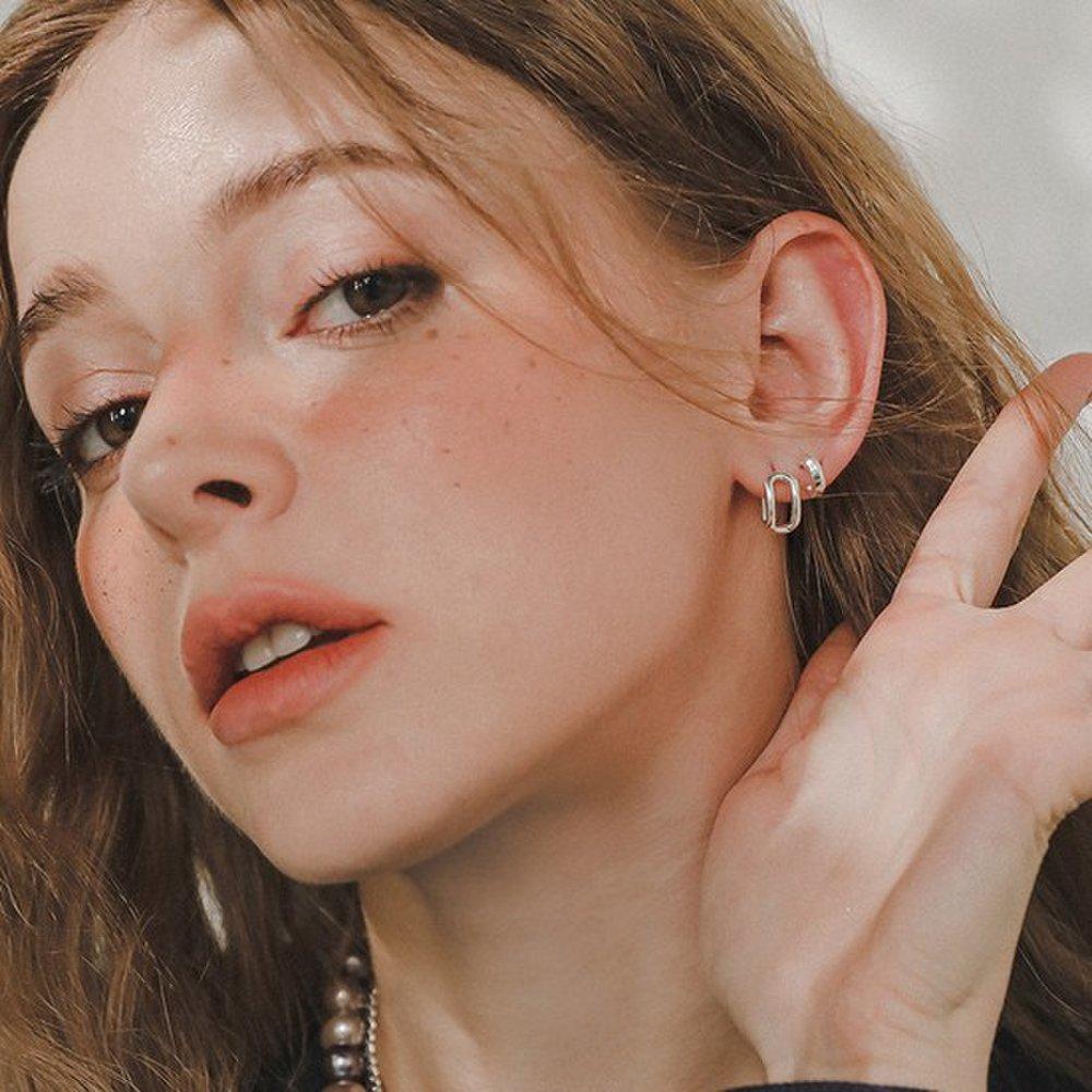 J.Lauren Open Square Silver One-Touch Ring Earrings M03826 — купить товар онлайн с бесплатной доставкой по всему миру!