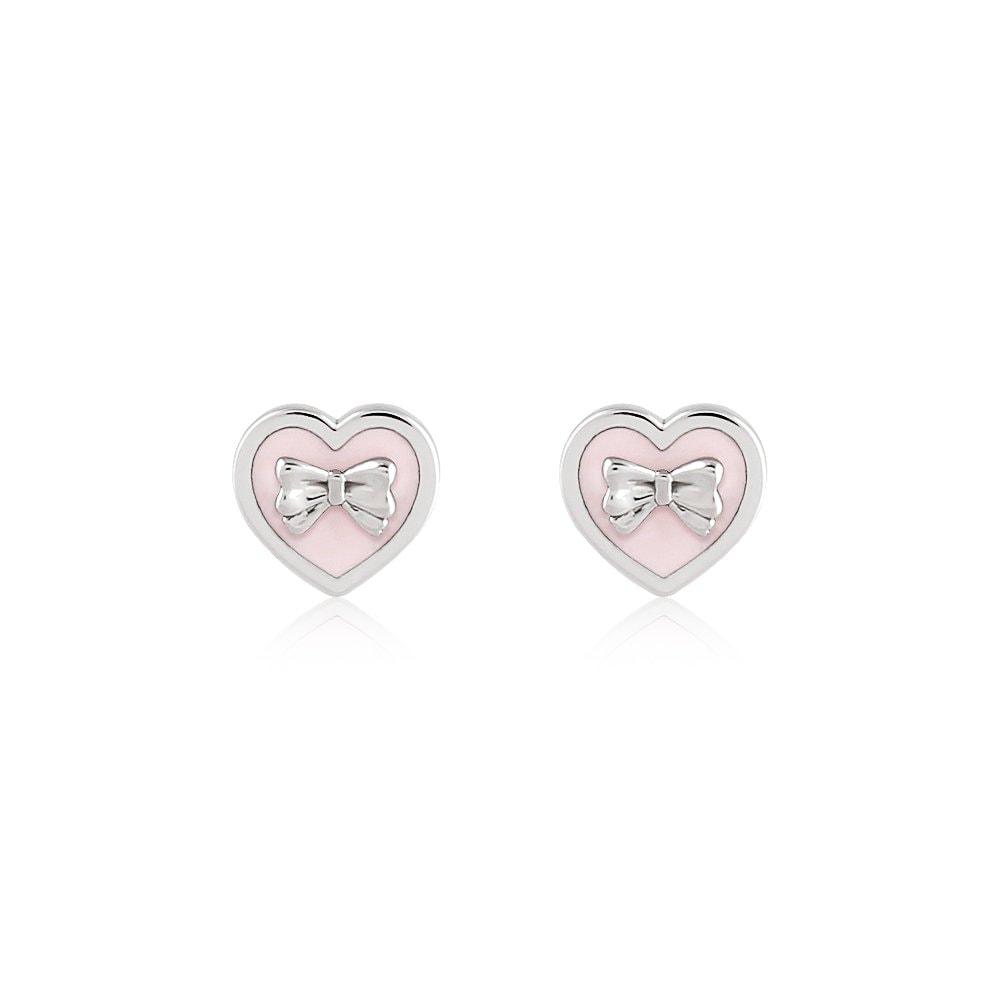 [Серебряный стержень 925 пробы] Серьги с лентой в виде сердца, Серьги с розовой лентой