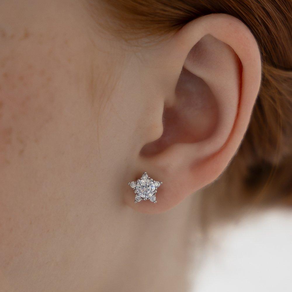 (925 Silver) Shine Star Stud Earrings Ec3232