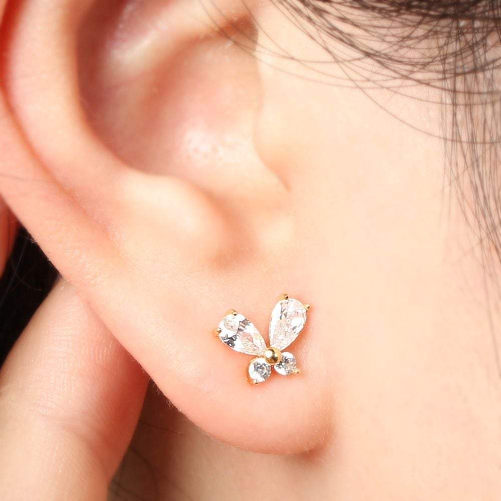 Позолоченные серьги-гвоздики из стерлингового серебра 925 пробы с бабочкой и кубическим цирконием для девушки, серьги из серебра 925 пробы