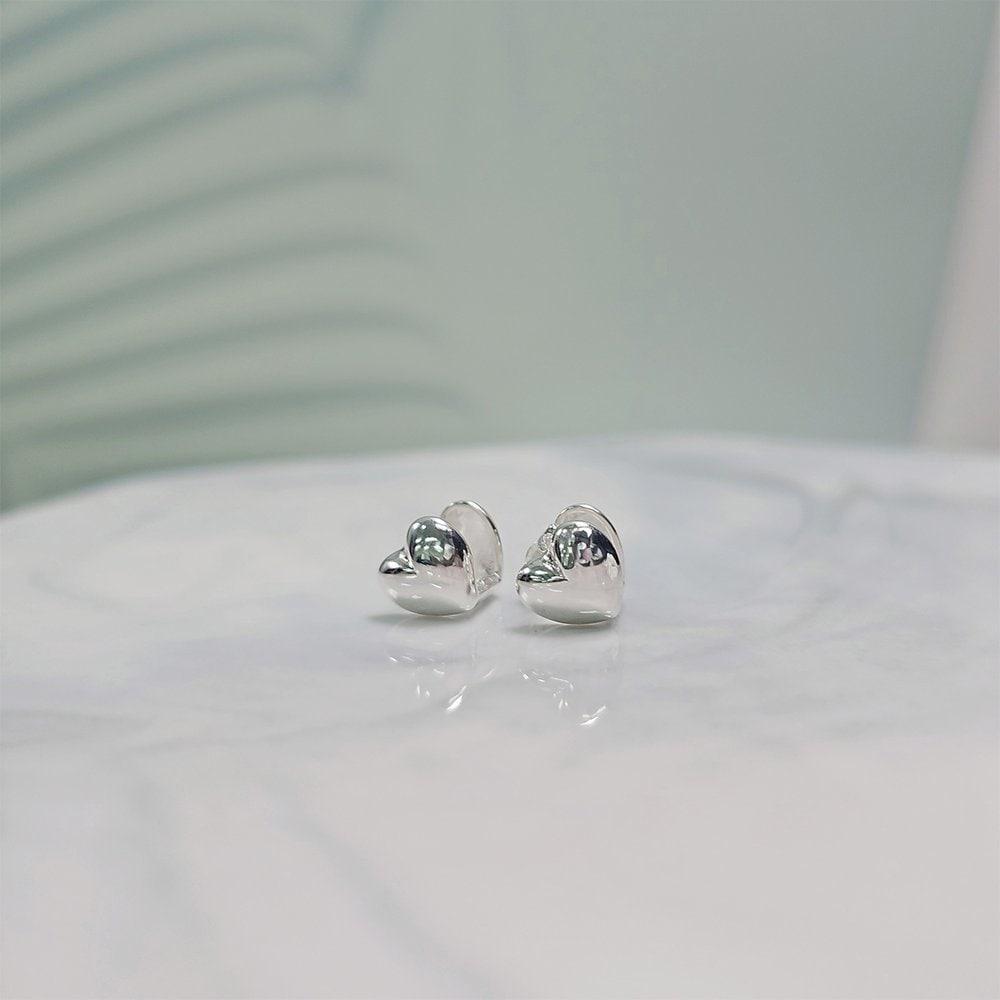 Silver Heart One-Touch Earrings
