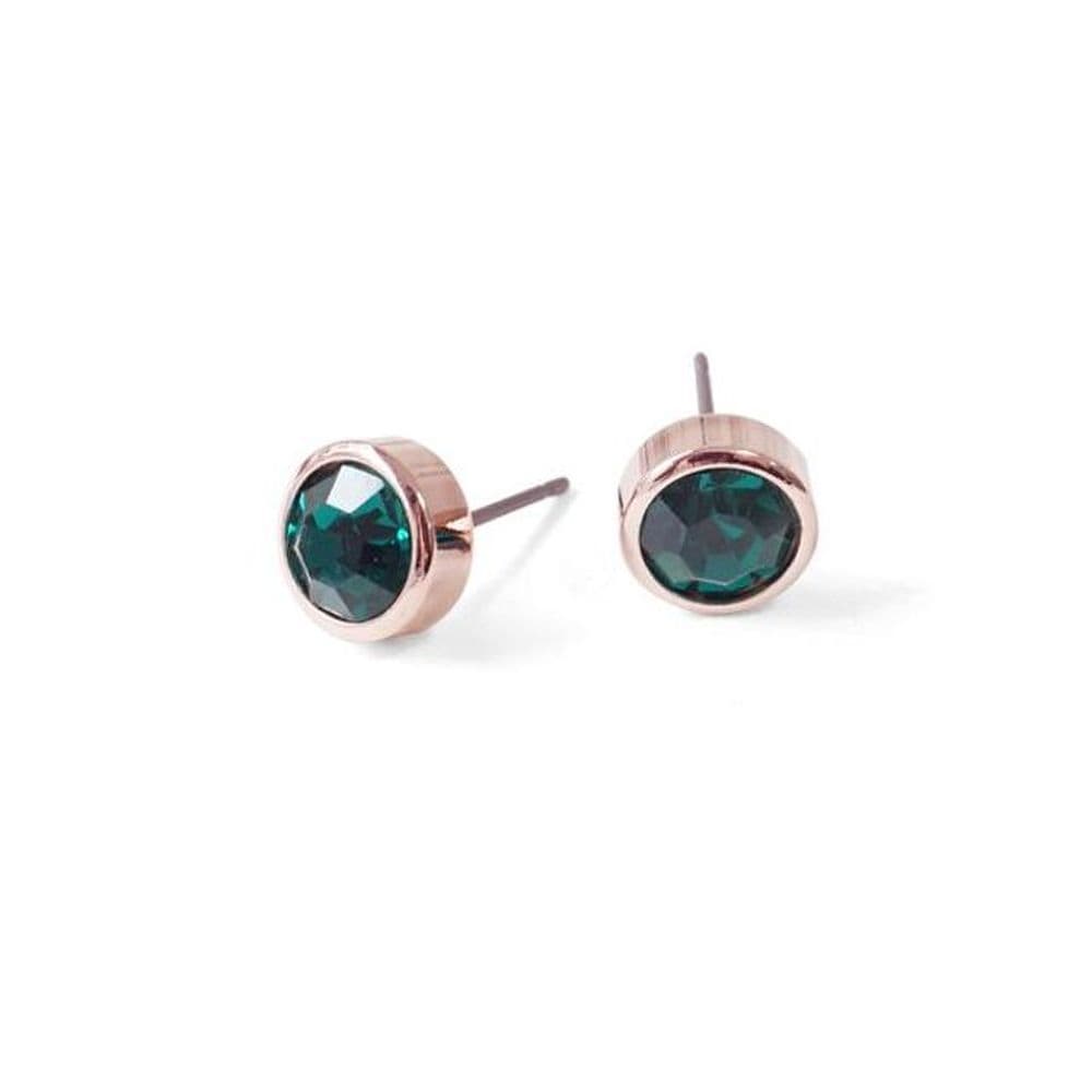 E535 Emerald 6mm Crystal Rose Gold Earrings