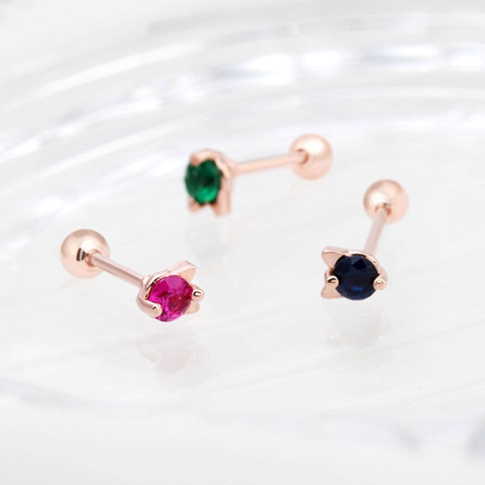 Цветной Розовое Золото Кот Кубический Цирконий Золотая Игла Пирсинг 14К