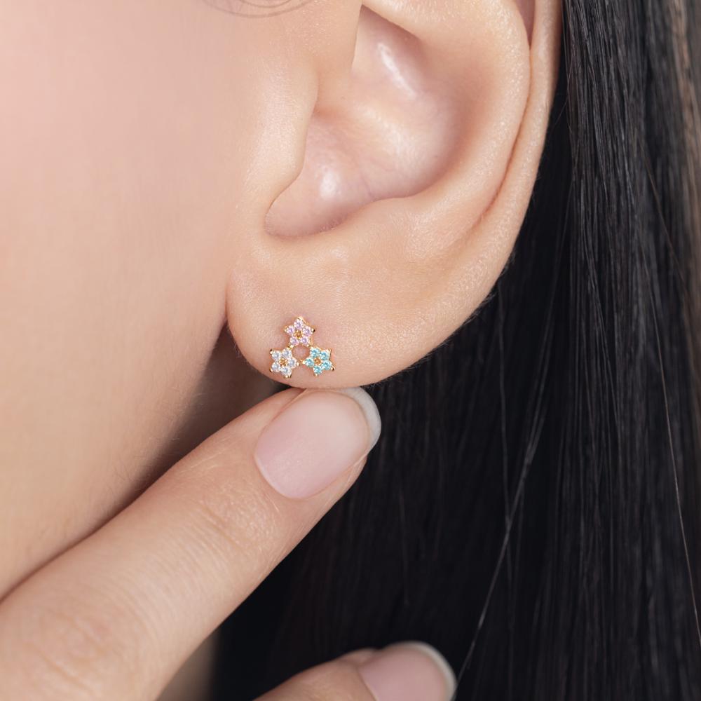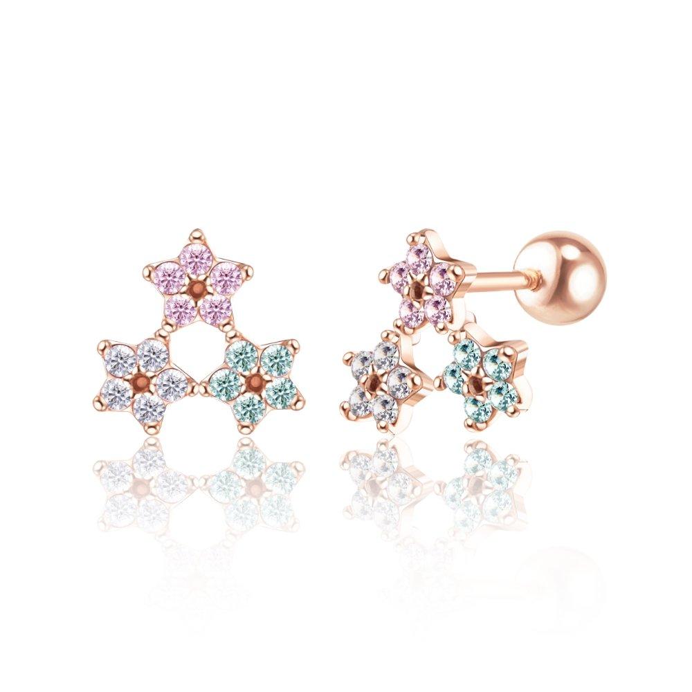 Мини-цветок из золота 14 карат, цветок-звезда, кубический пирсинг, штанга для мочки уха, серьги-конусы для уха