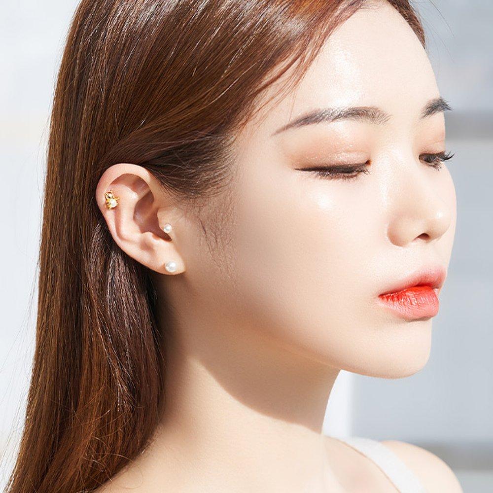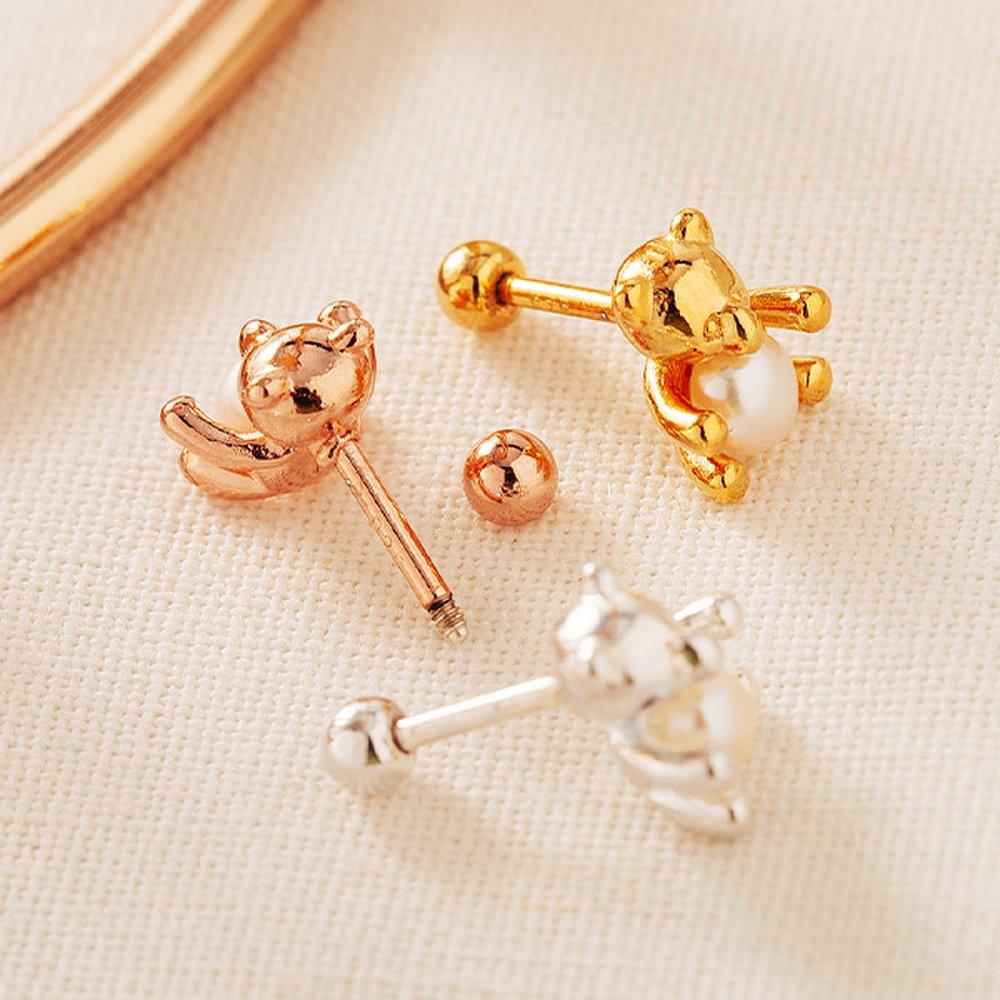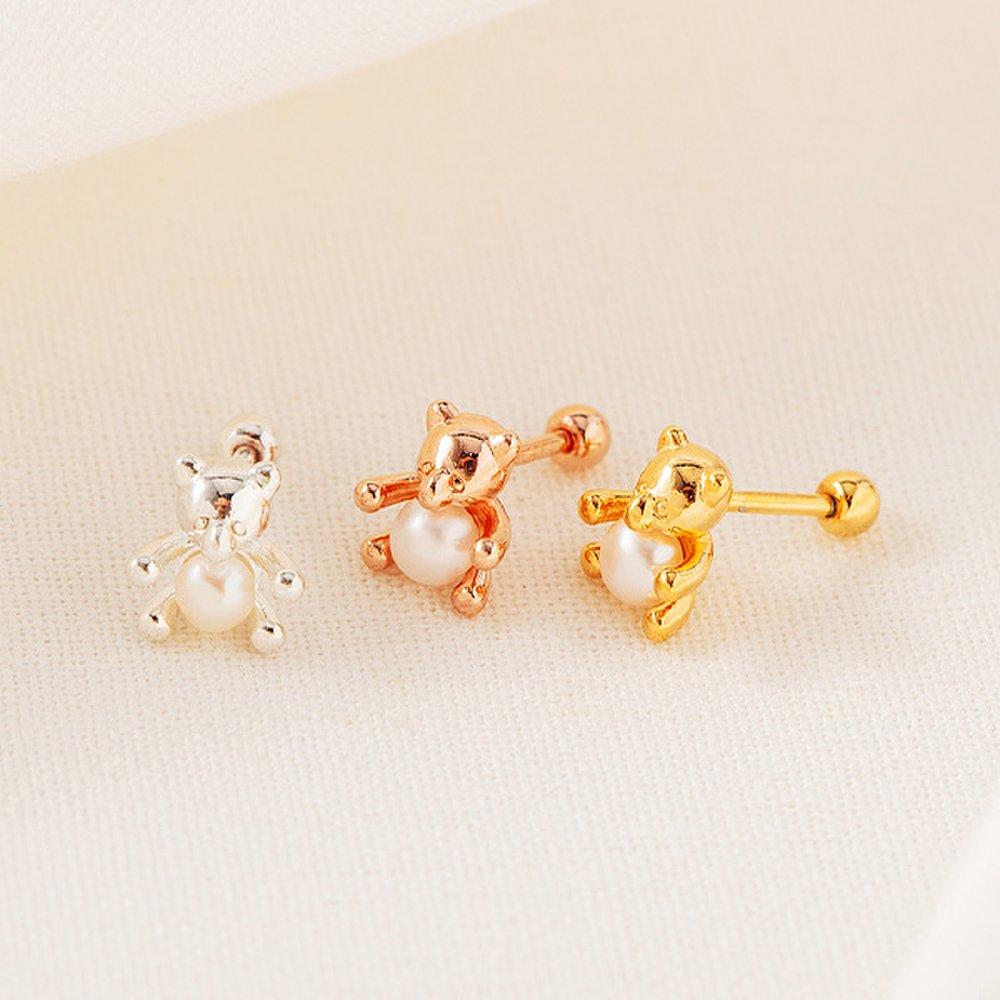 [925 Silver] Hug Pearl Bear Piercing (21Ps013)