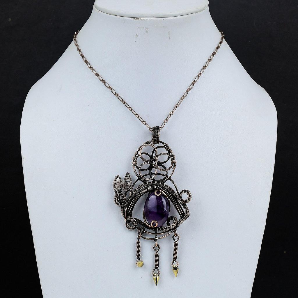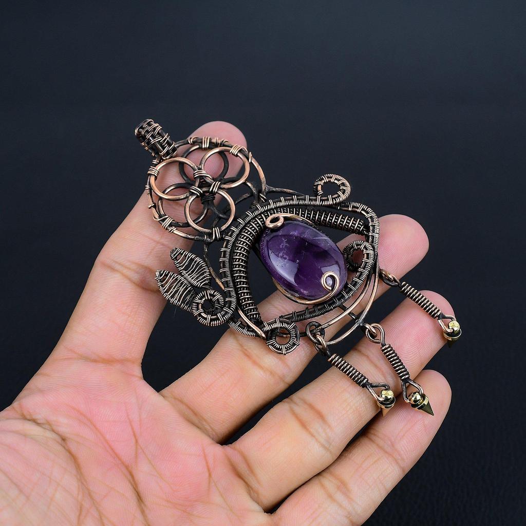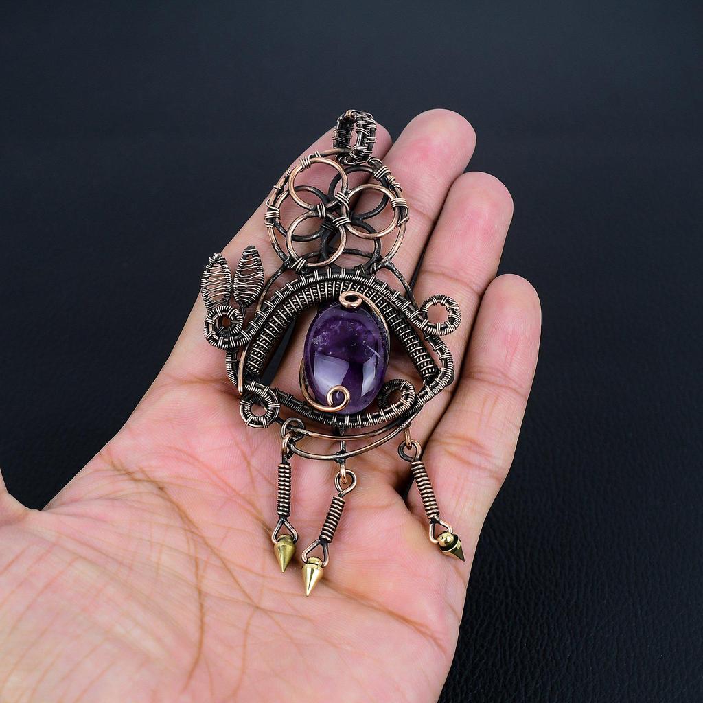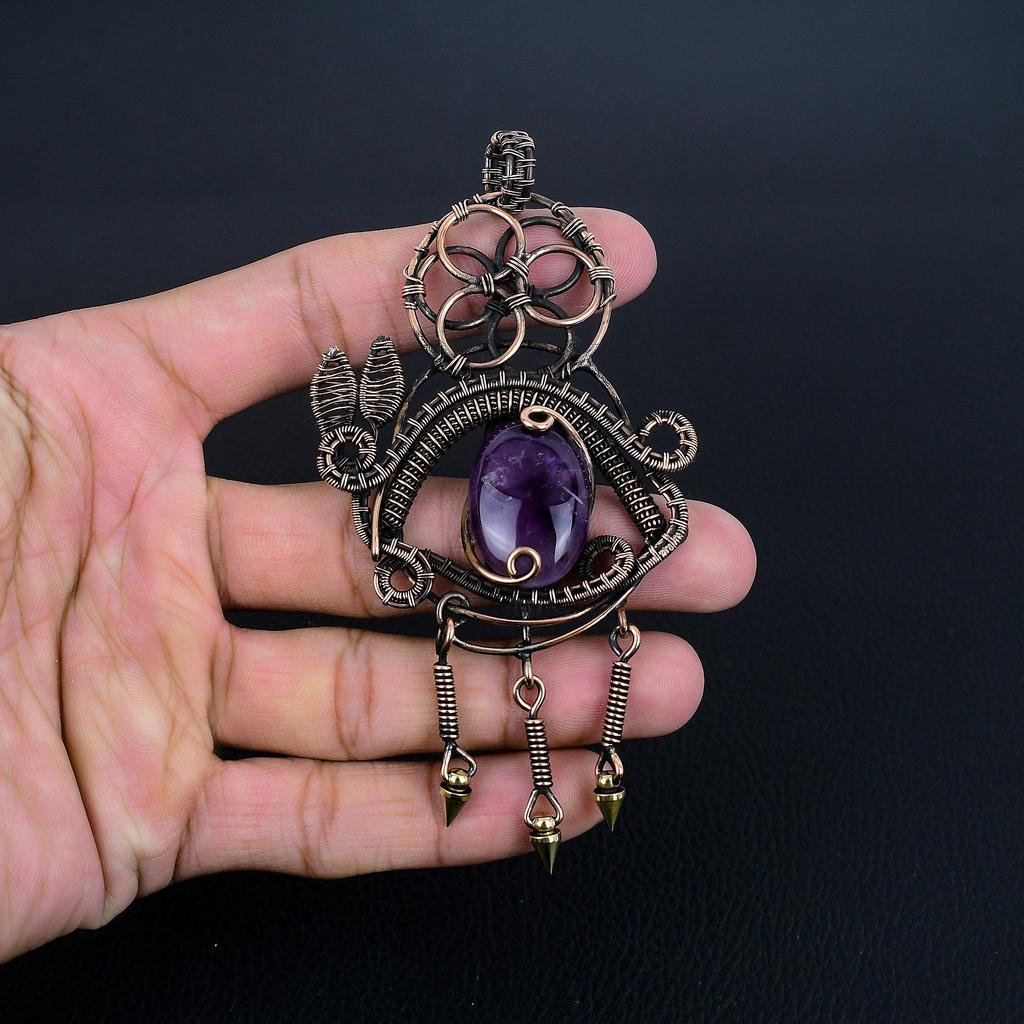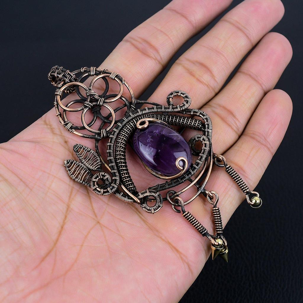 Аметистовый кулон, ювелирное изделие из драгоценного камня, кулон, обернутый медной проволокой 999 пробы, подарок для женщин, кулон ручной работы