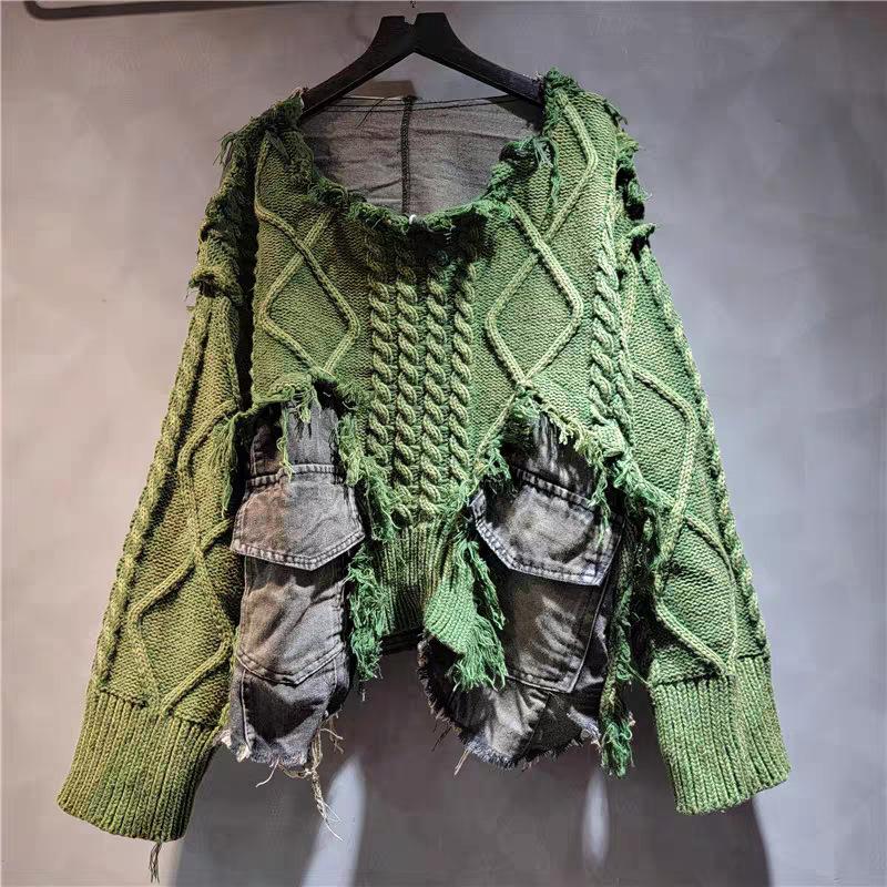 Женский пуловер неправильной формы с эффектом состаривания, пэчворк, карманы, винтажный выстиранный деним — купить товар онлайн с бесплатной доставкой по всему миру!