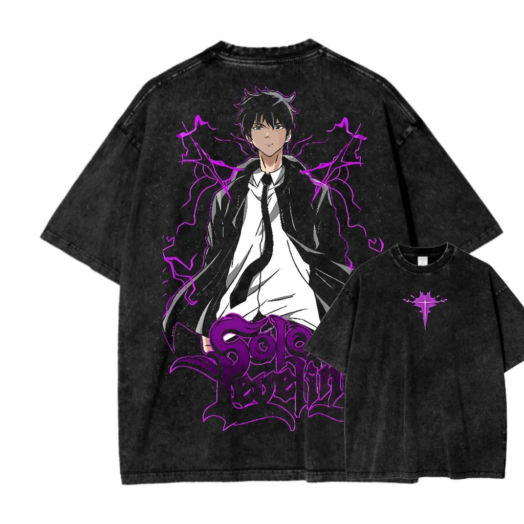 Соло-левелинг Сон Джин-у Принтованная футболка Мужская Женская Ретро Выстиранные Футболки Хлопковая Футболка с Коротким Рукавом Одежда Харадзюку Мужская Футболка