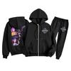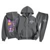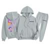 Детская мода Толстовка с длинным рукавом, на молнии, с капюшоном, спортивные штаны с принтом, комплект толстовки с карманами