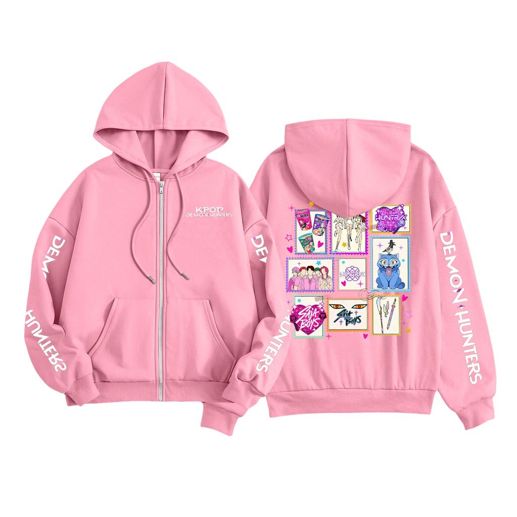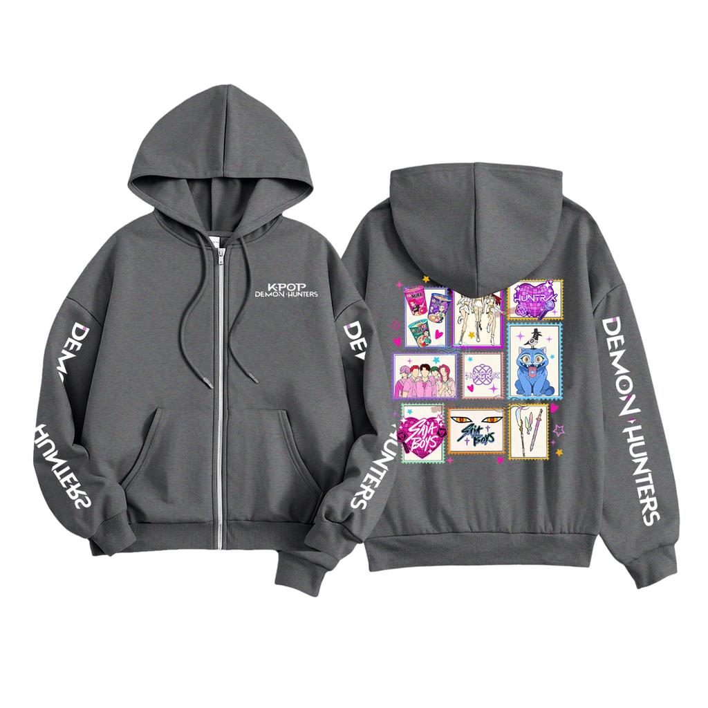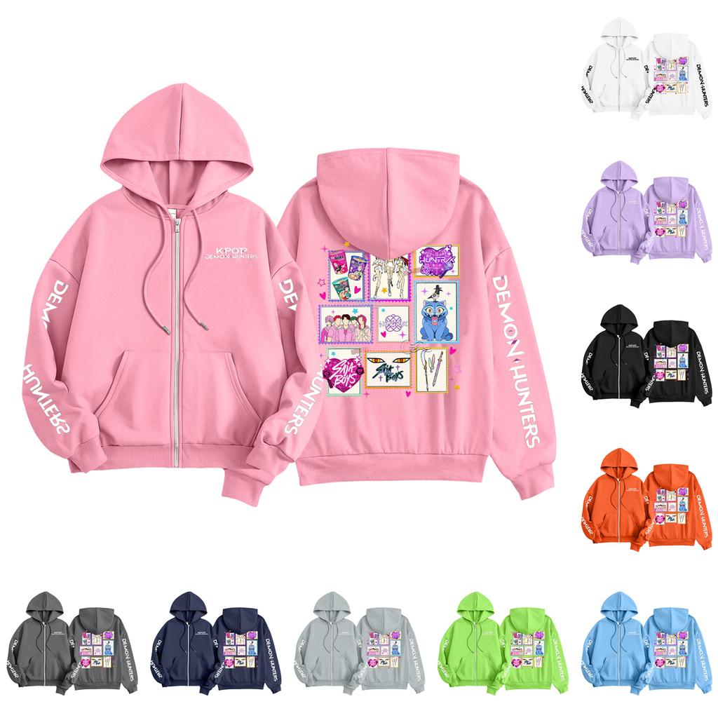 Детская модная женская легкая толстовка с длинными рукавами, застежкой-молнией, принтом и карманами.