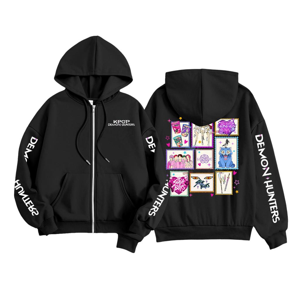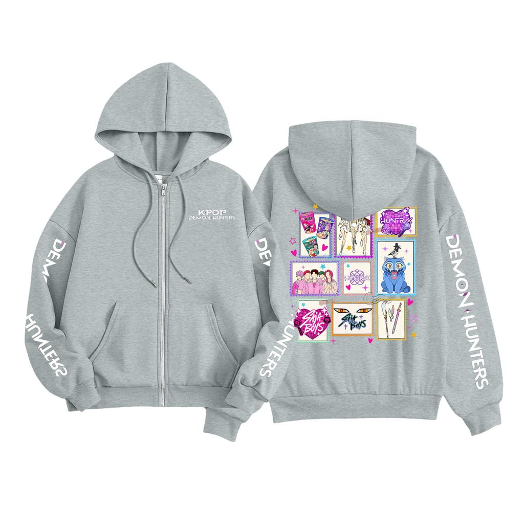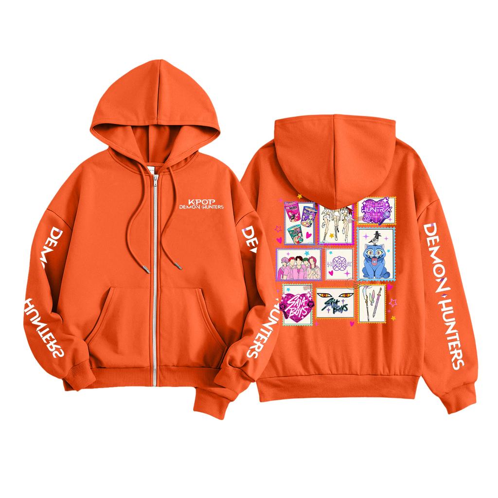 Детская модная женская легкая толстовка с длинными рукавами, застежкой-молнией, принтом и карманами.