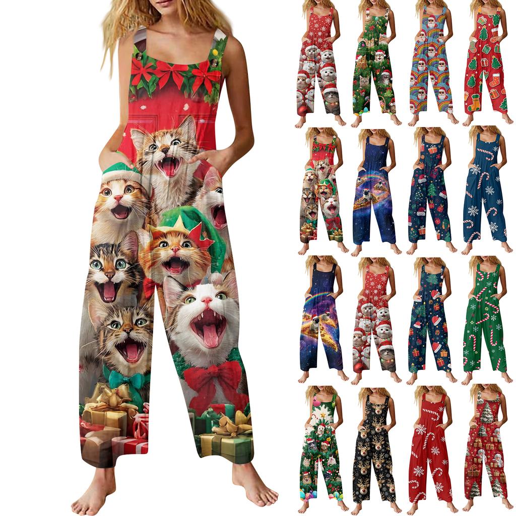Женский повседневный комбинезон с рождественским принтом, хлопковый комбинезон без рукавов с принтом — купить товар онлайн с бесплатной доставкой по всему миру!
