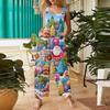 Женский повседневный комбинезон с рождественским принтом, хлопковый комбинезон без рукавов с принтом