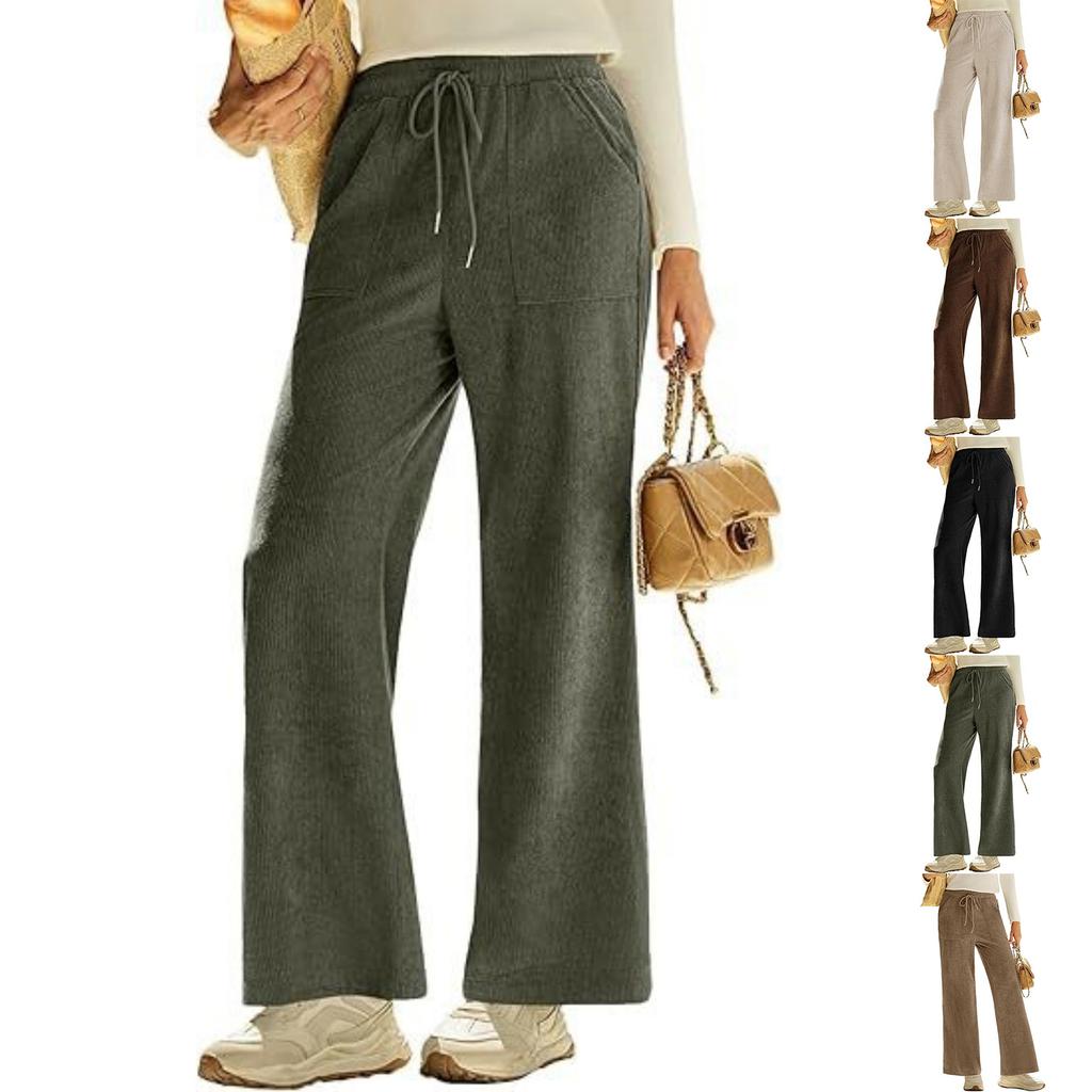 Модные женские вельветовые брюки прямого кроя с высокой талией и завязками, с карманами и широкими штанинами, повседневные брюки для женщин — купить товар онлайн с бесплатной доставкой по всему миру!