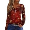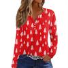 Женская футболка с рождественским принтом на пуговицах с длинным рукавом, повседневная, выходного дня, модная, базовая, с V-образным вырезом, обычная