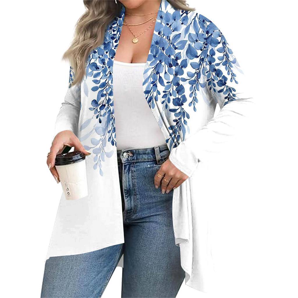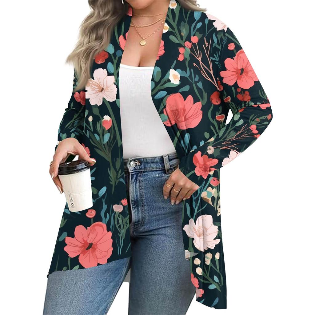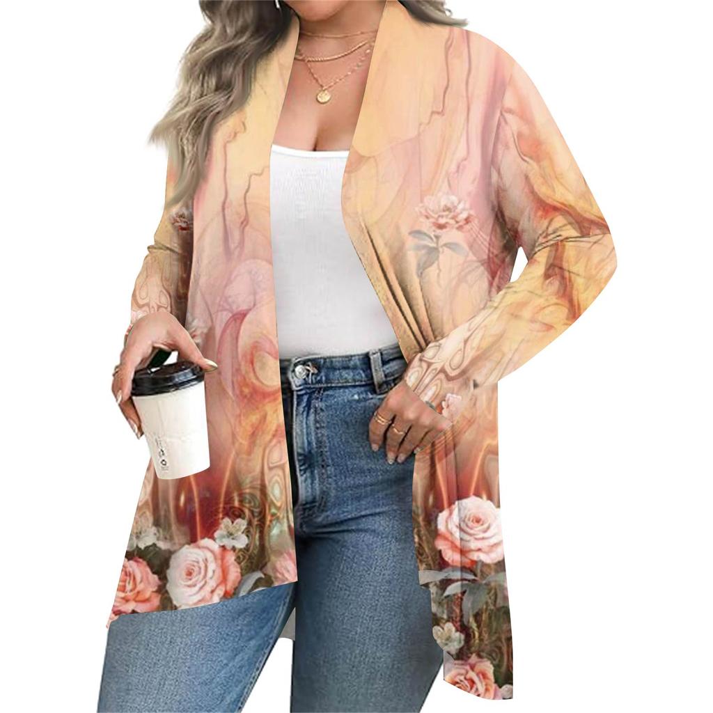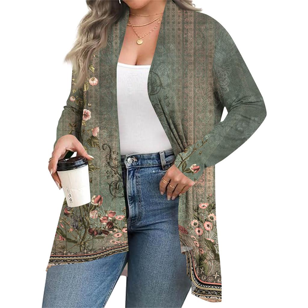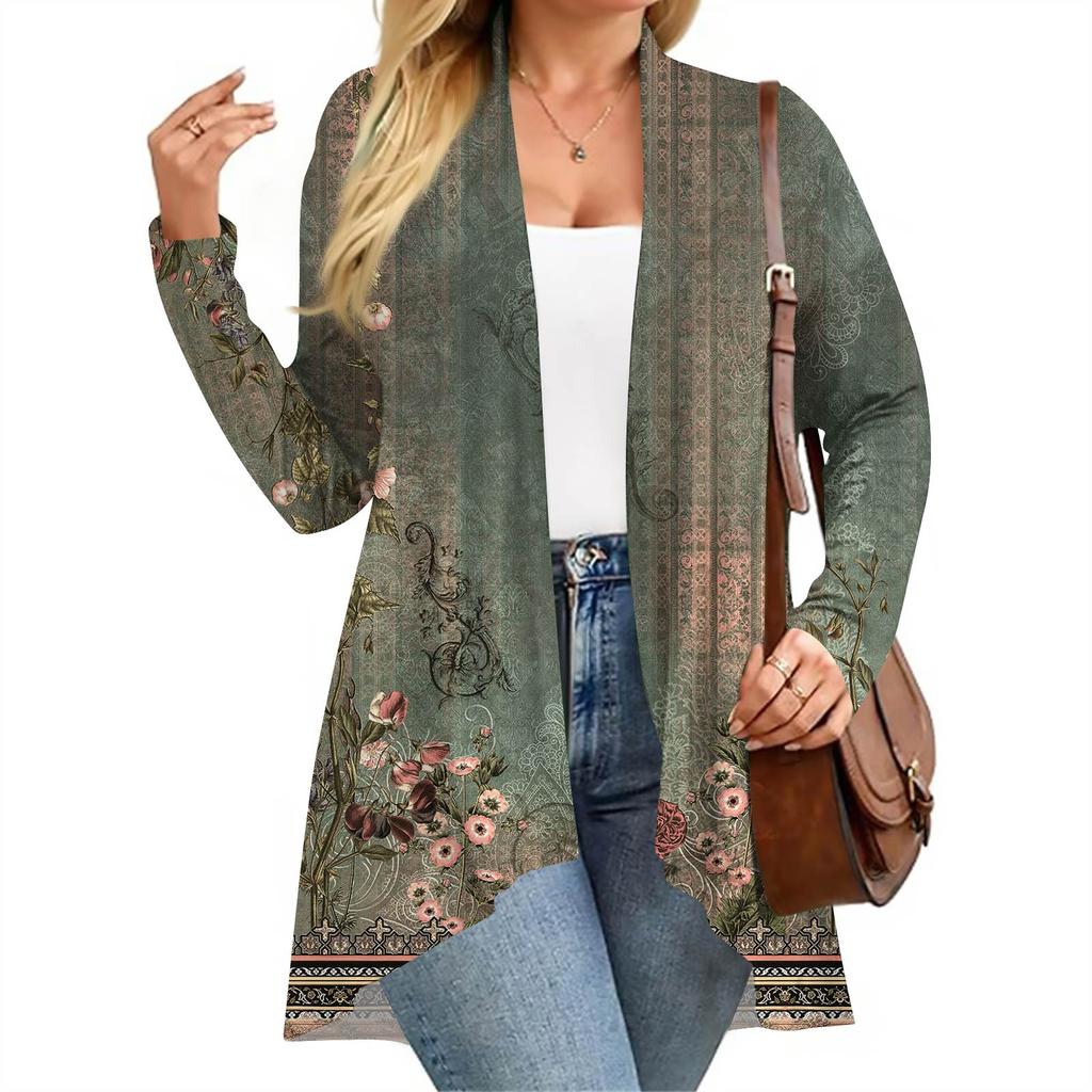 Женский осенне-зимний модный повседневный кардиган средней длины с принтом и длинным рукавом