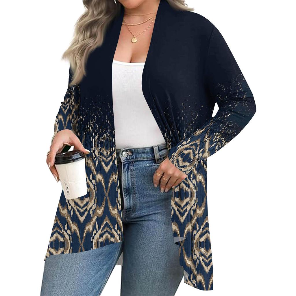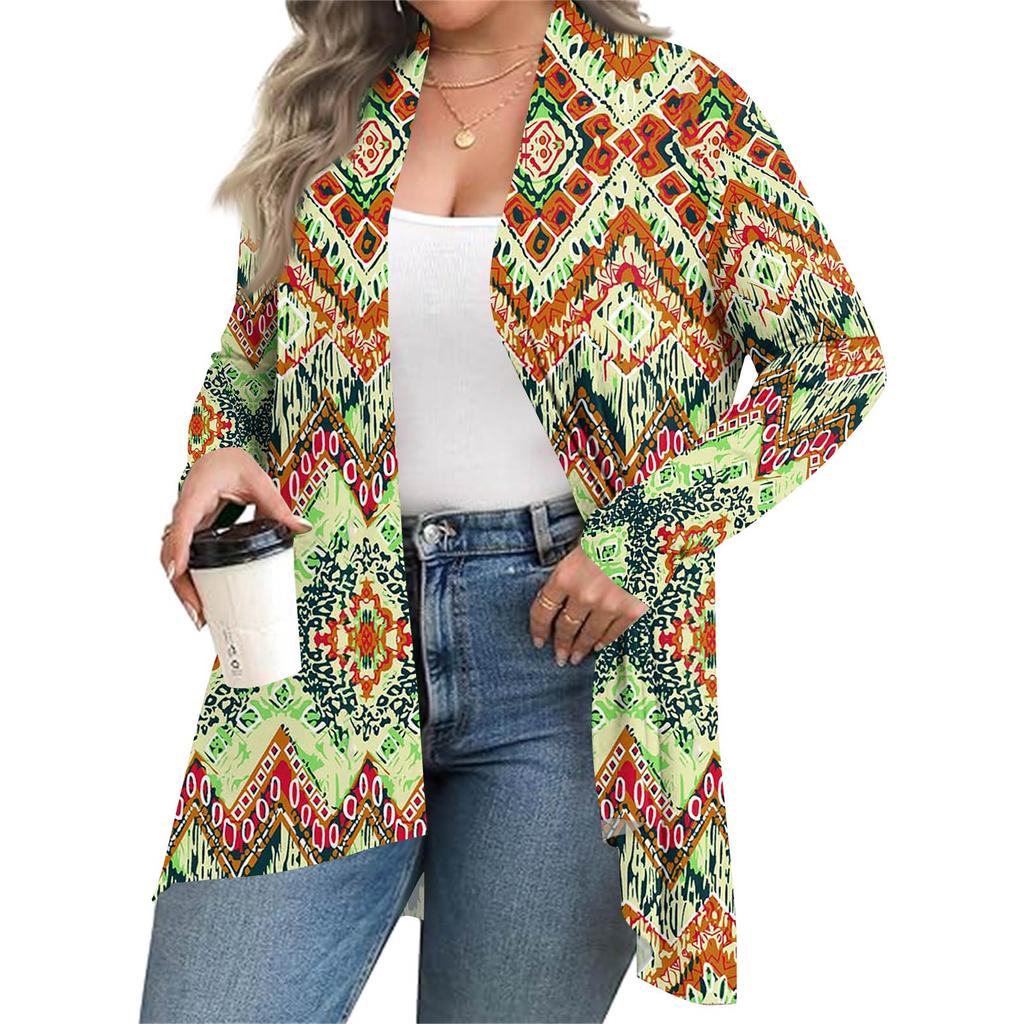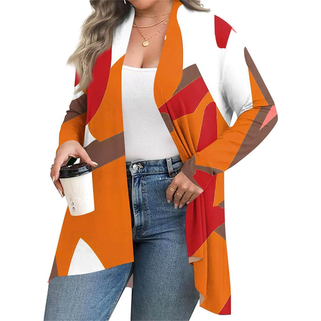 Женский осенне-зимний модный повседневный кардиган средней длины с принтом и длинным рукавом