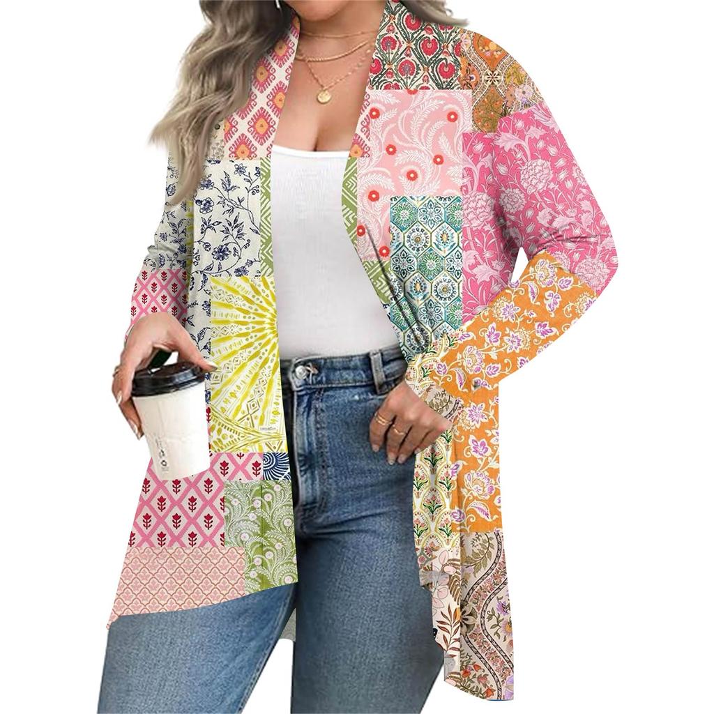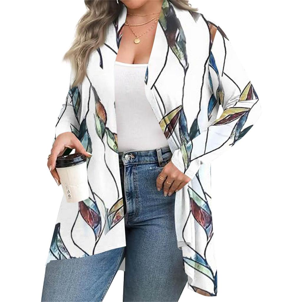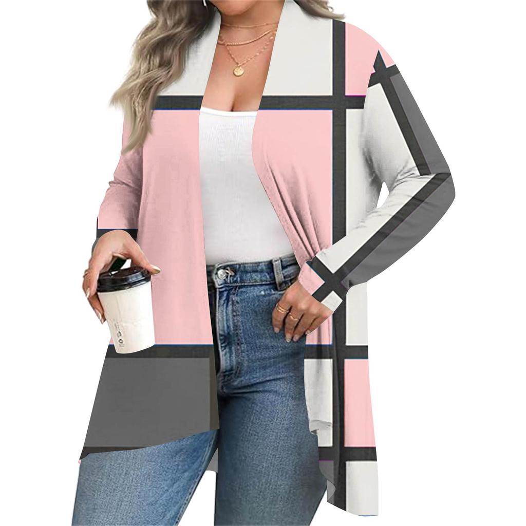 Женский осенне-зимний модный повседневный кардиган средней длины с принтом и длинным рукавом
