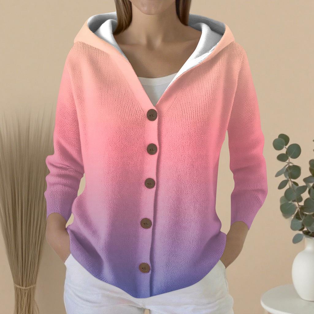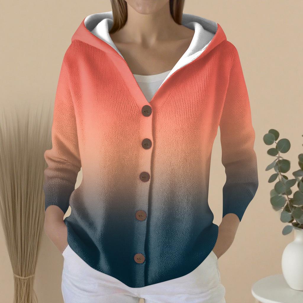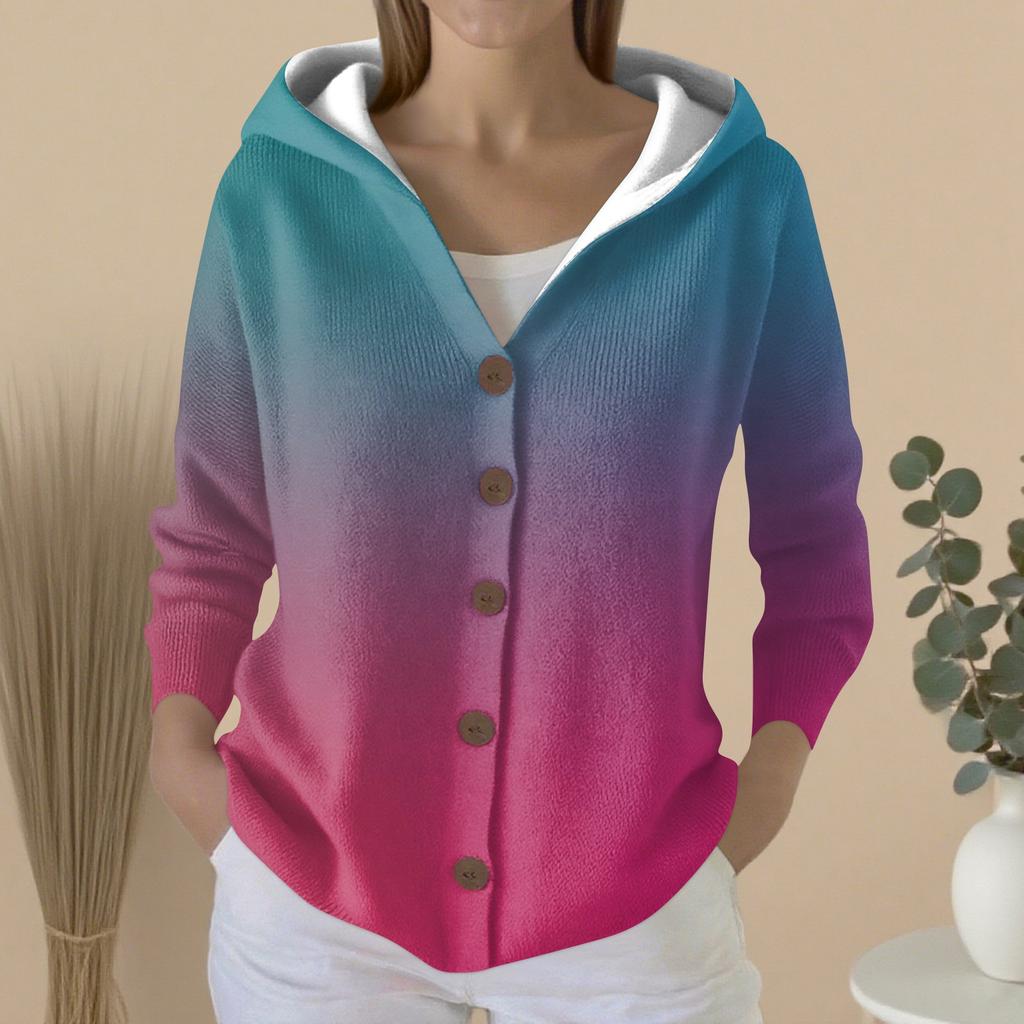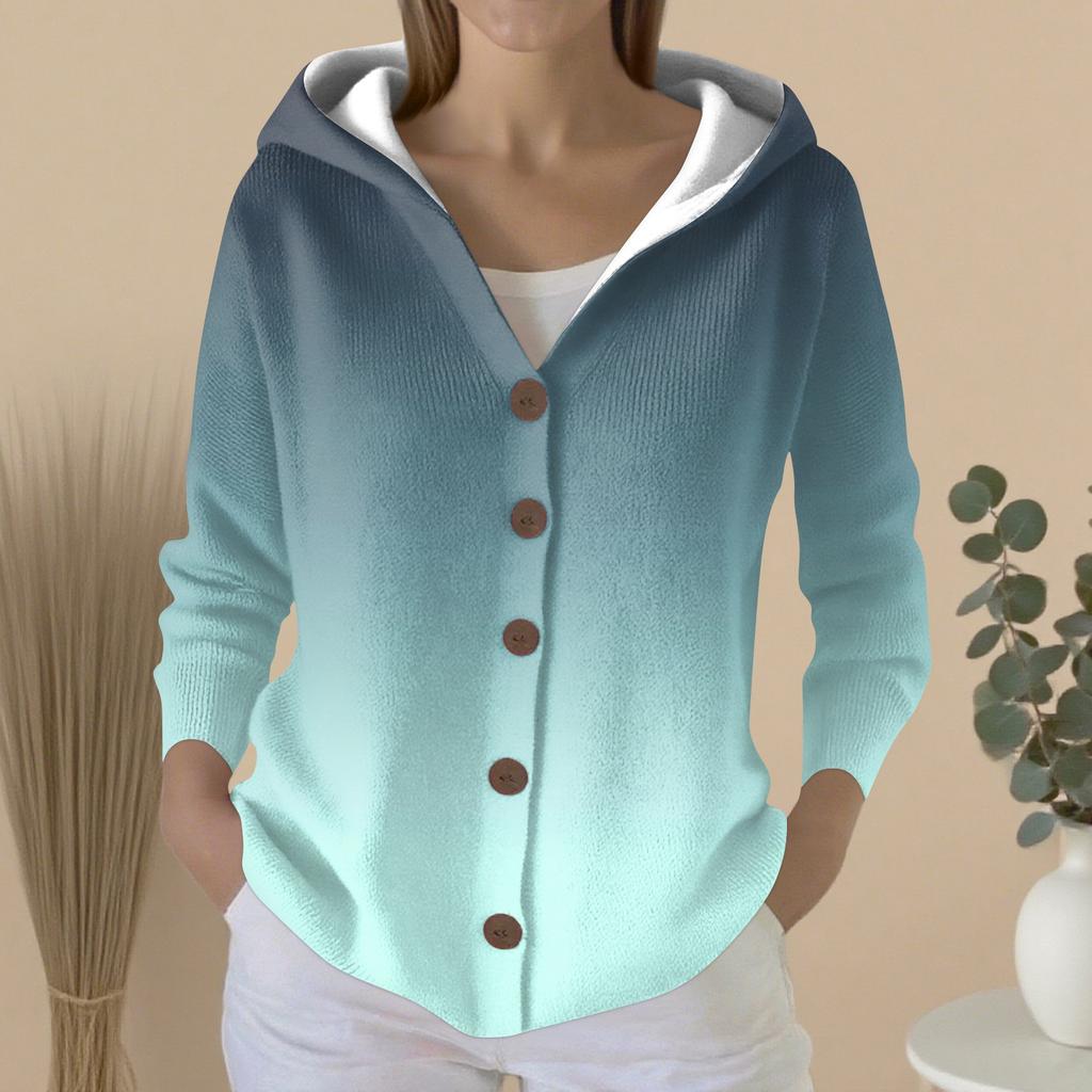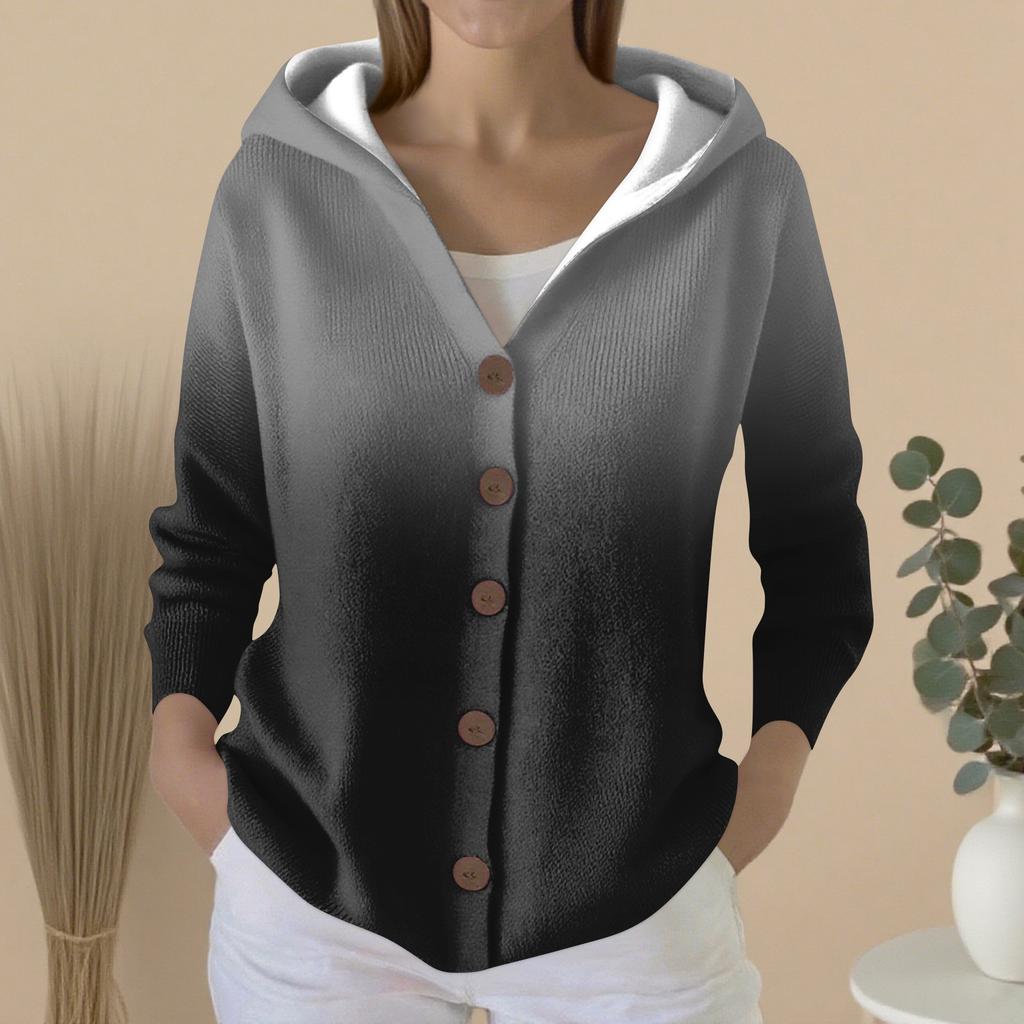 Женский модный повседневный свитер на пуговицах с принтом, кардиган, куртка с капюшоном