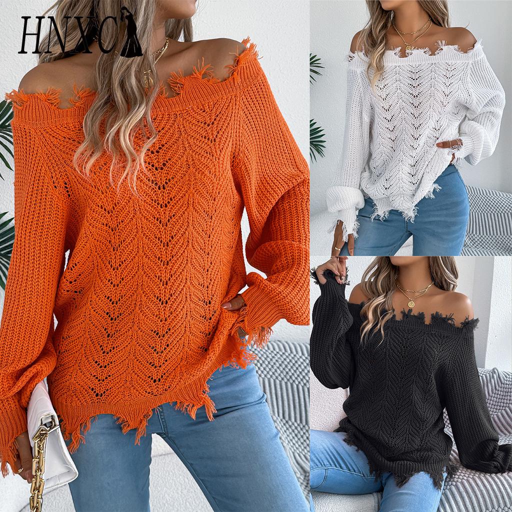 HNXC Осенне-зимний однотонный пуловер с вырезами, длинными рукавами и открытыми плечами для женщин