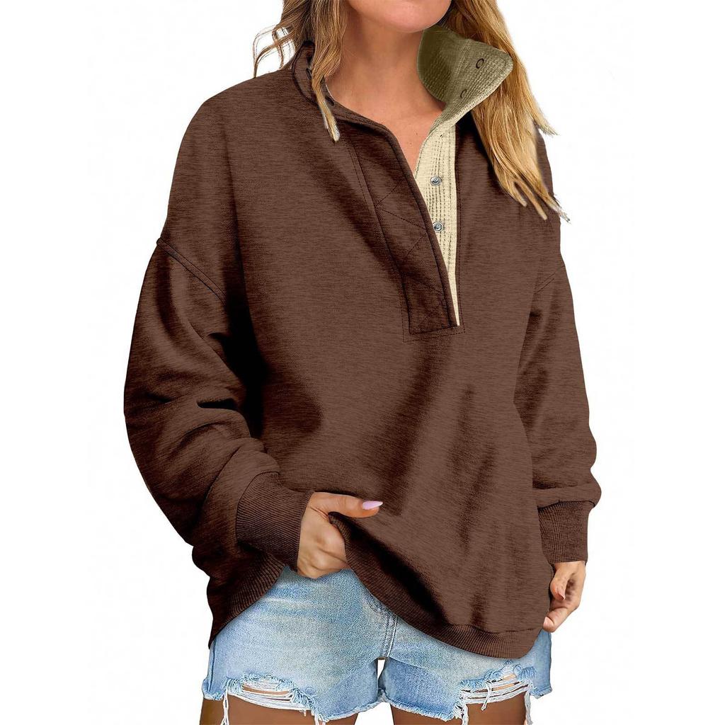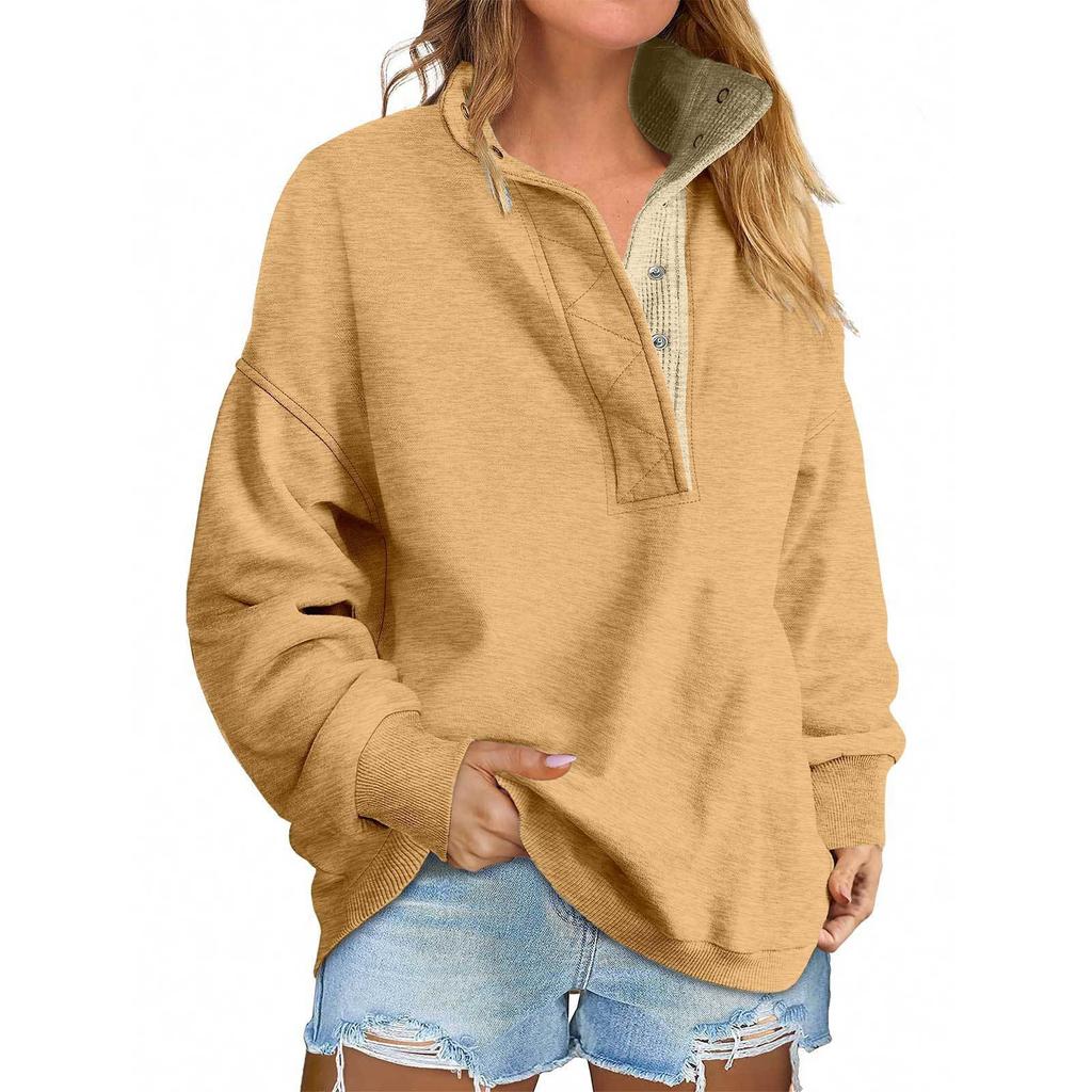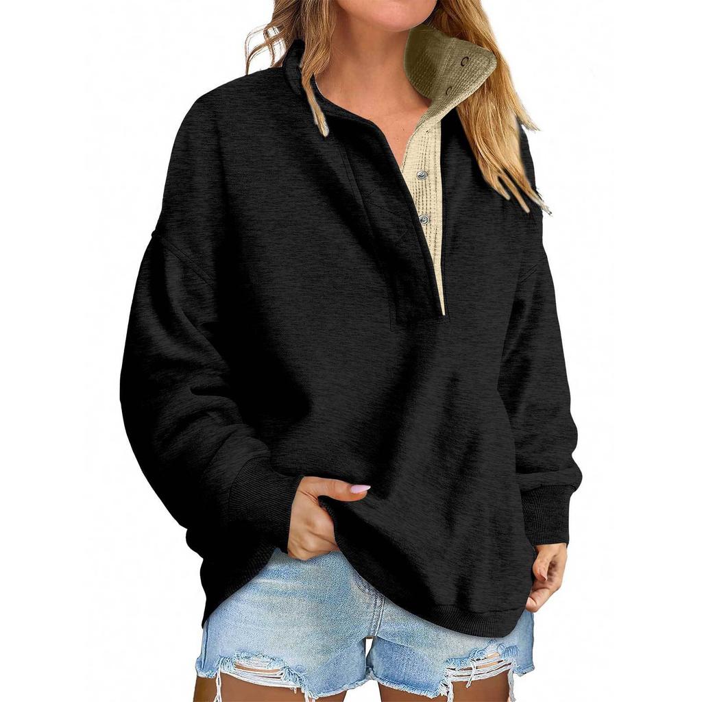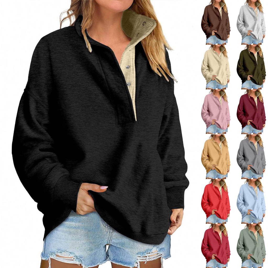 Женская модная толстовка с длинным рукавом, однотонная, пуловер, повседневная, свободная, с пуговицами