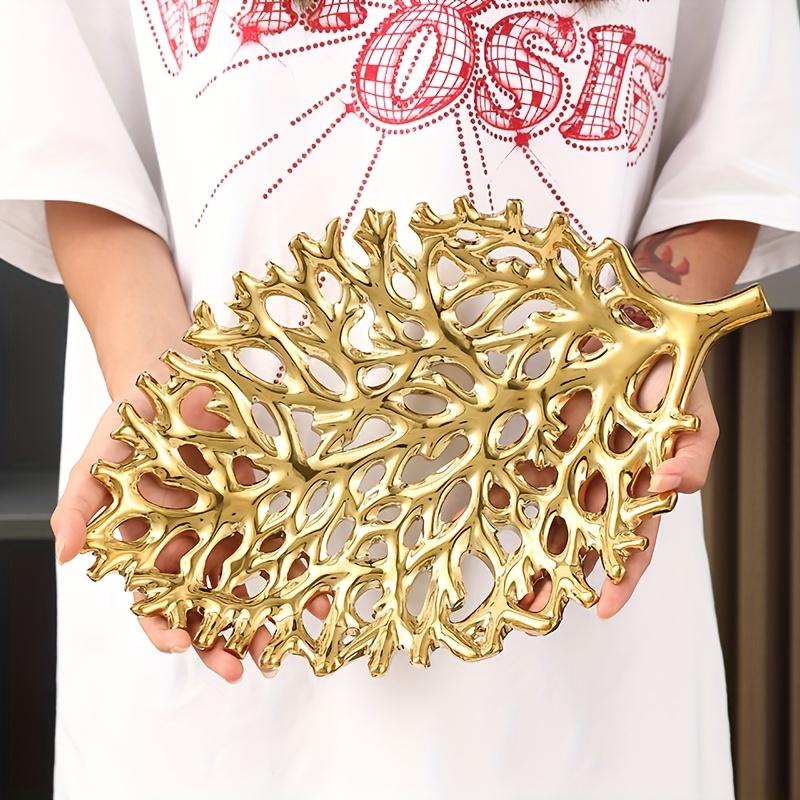 1 шт. Элегантный декоративный поднос с золотисто-желтым узором из листьев, Роскошный декор для столешницы в гостиную, столовую, для свадеб, мероприятий, Поверхность для контакта с непищевыми продуктами