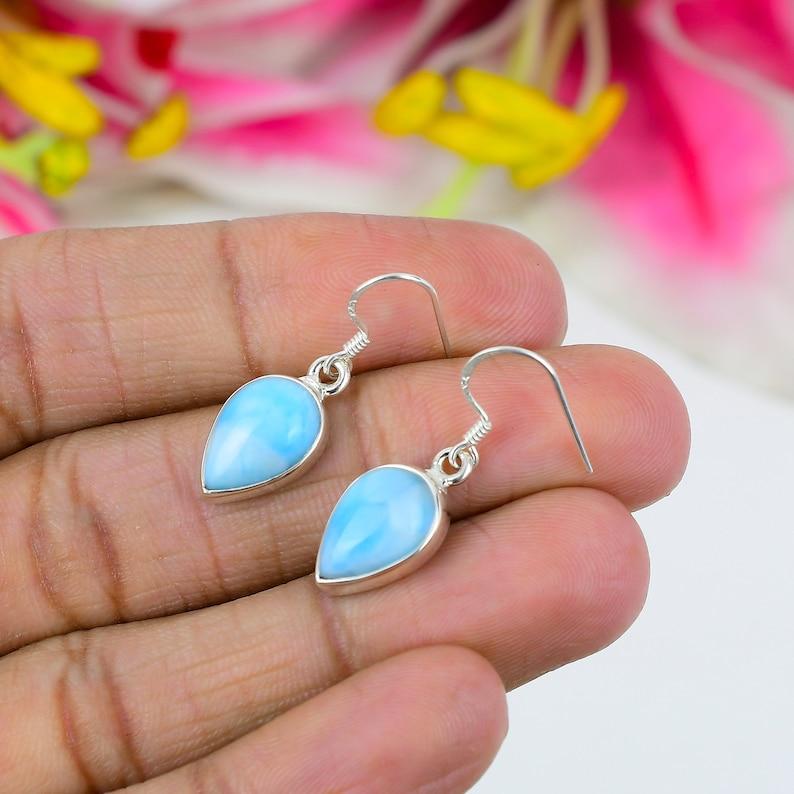Серьги-подвески из цельного стерлингового серебра 925 пробы ручной работы с дизайнерским ларимаром, камнем-талисманом по месяцу рождения, подарок