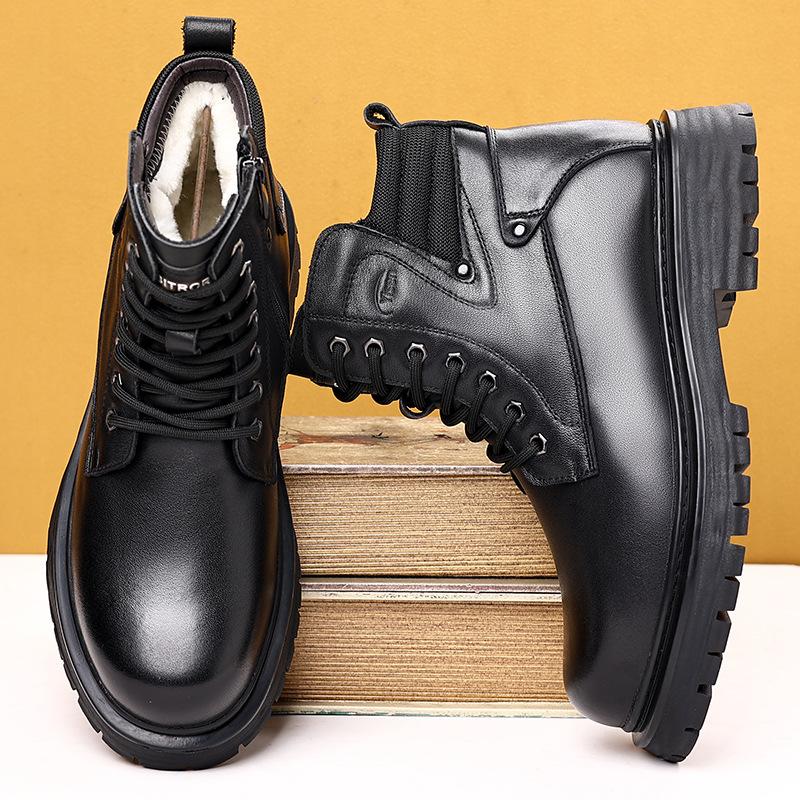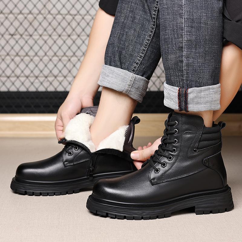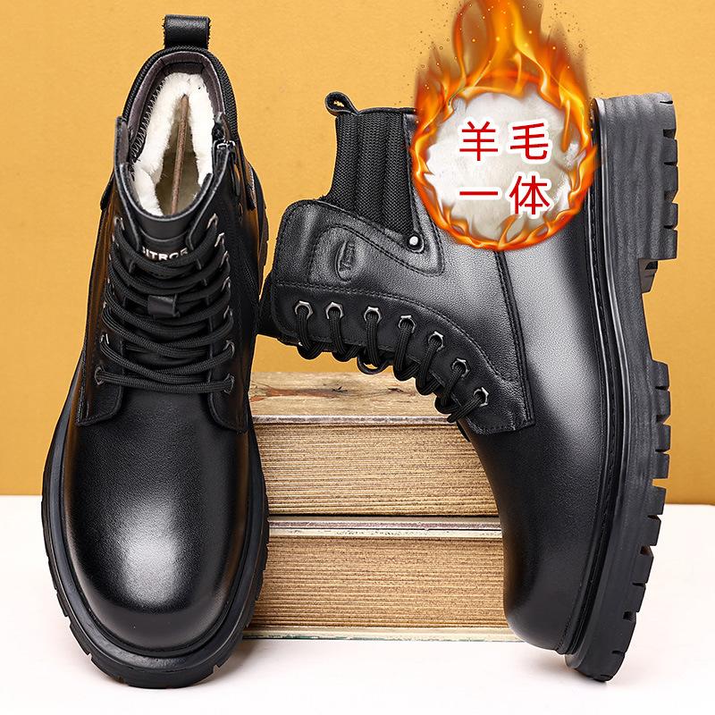 Зимние новые кожаные мужские ботинки из цельной овчины, мужские термоботинки Мартин на толстой подошве, повседневная мужская обувь Вэньчжоу