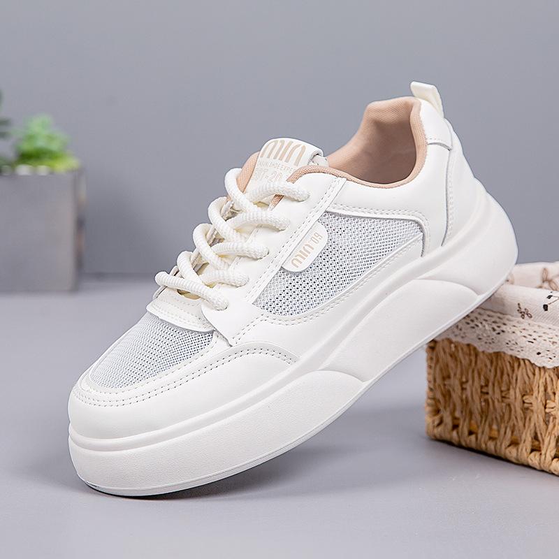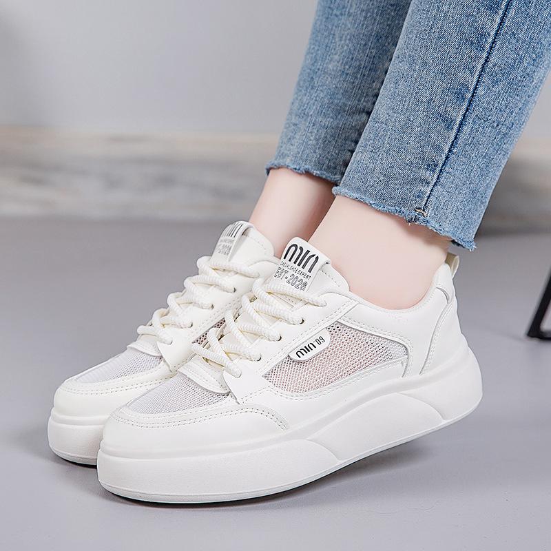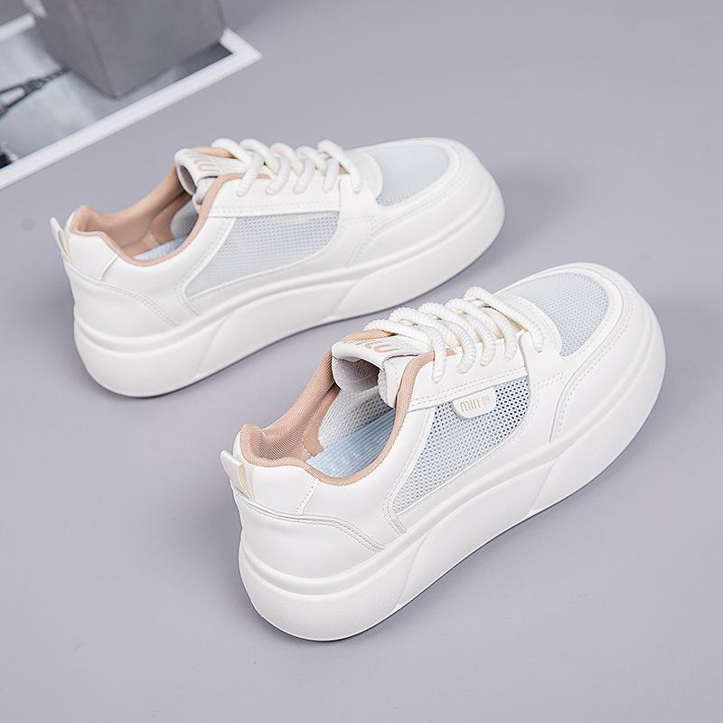 Маленькие белые туфли женские летние 2025 года новые сетчатые дышащие нескользящие толстые подошвы увеличивающие рост студенческие туфли универсальные повседневные туфли для серфинга