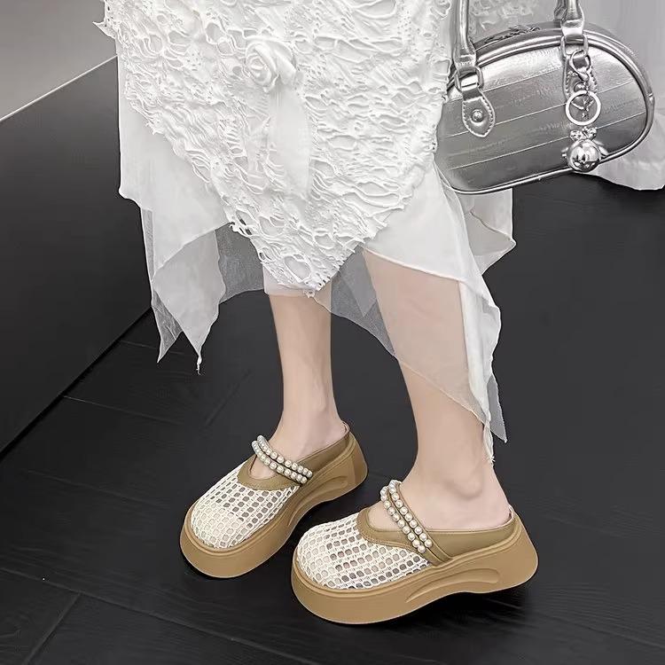 2025 новые толстоподошвенные увеличивающие рост жемчужные суперхит шлепанцы с открытой пяткой женские летние уличные полые прохладные шлепанцы