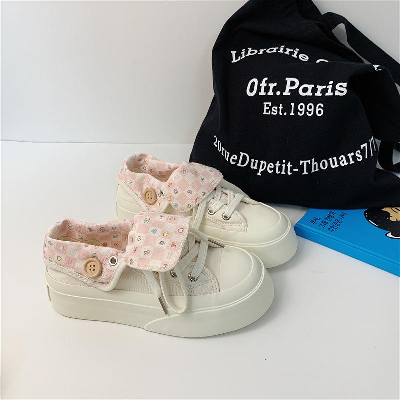 Корейская версия повседневной женской обуви дизайн два в одном летние тонкие дышащие парусиновые туфли на толстой подошве 2025 новые универсальные маленькие белые туфли