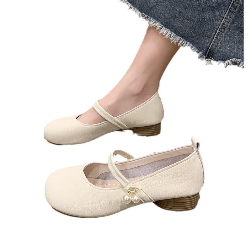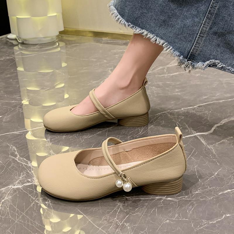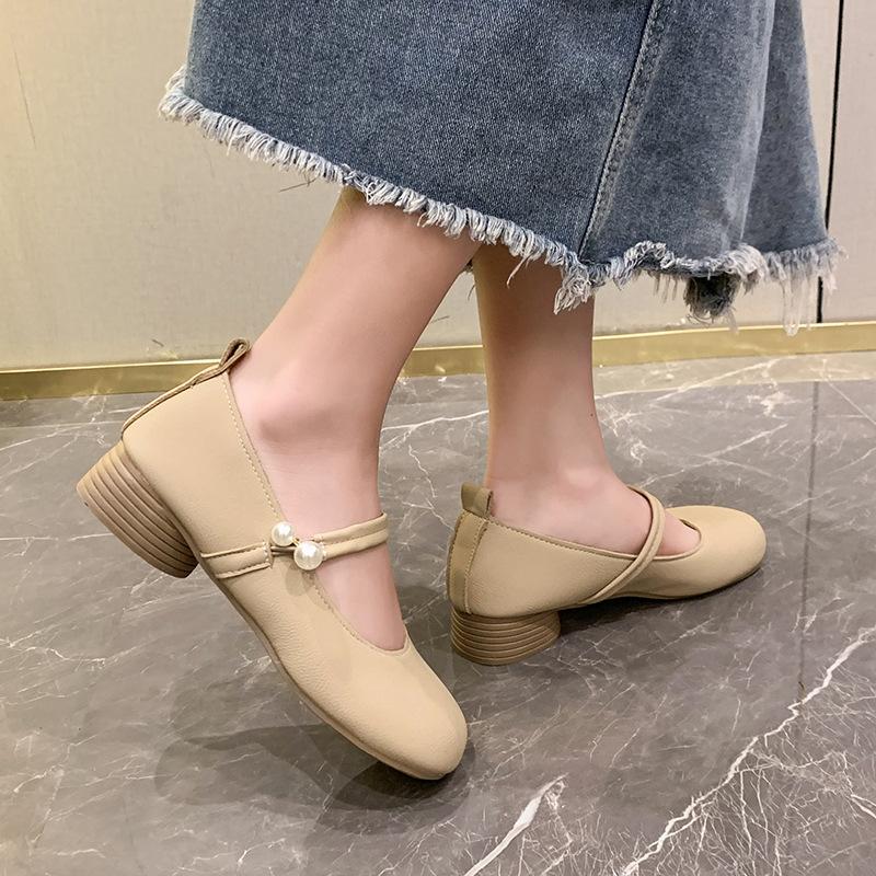 Туфли Мэри Джейн женские летние 2025 новые жемчужные пряжки нежные вечерние туфли легкие толстые каблуки мягкие подошвы одинарные туфли женские