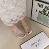 Французское слово из страз с сандалиями толстый каблук высокие каблуки лето новый серебристый крутые шлепанцы с юбкой сказочная обувь